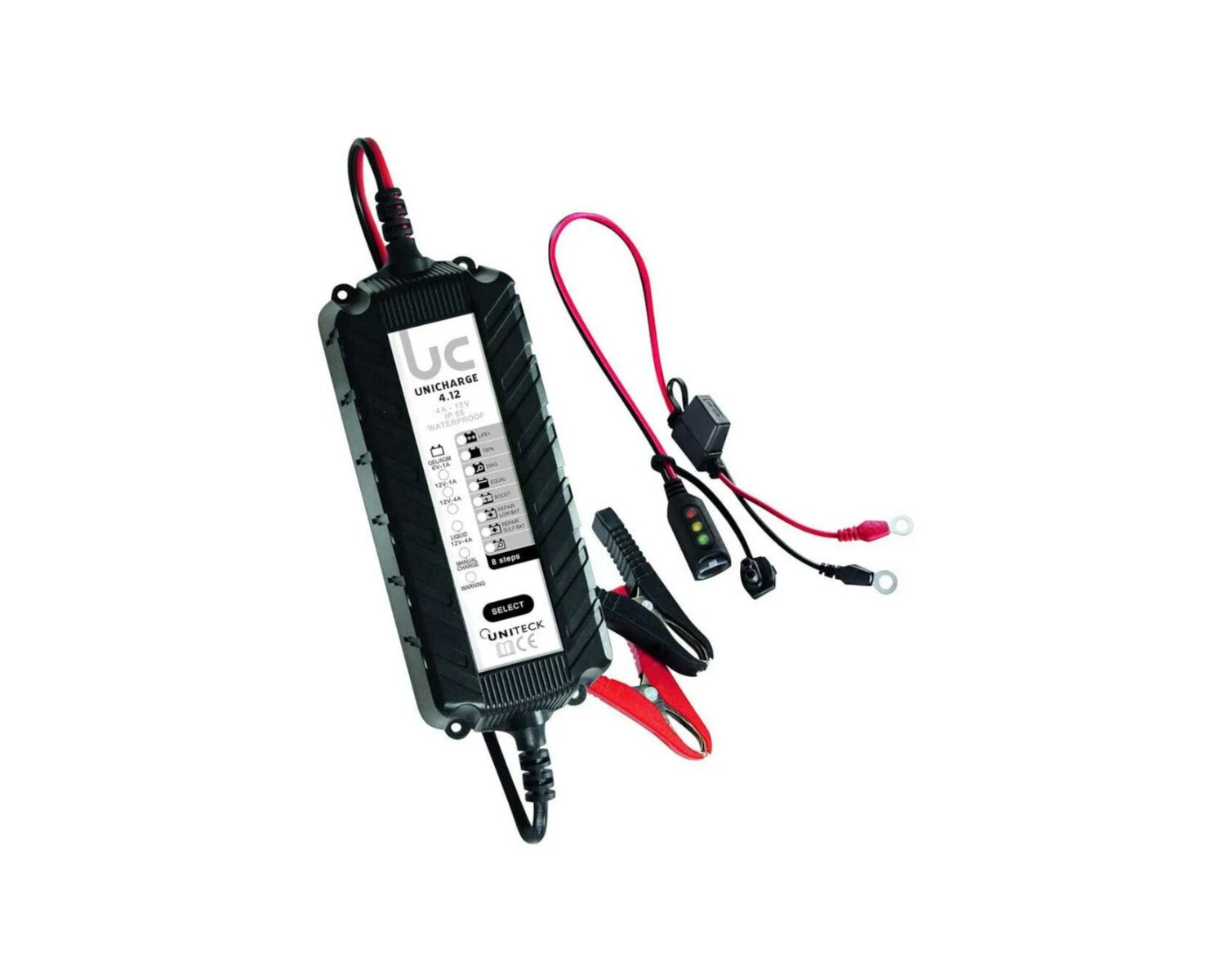 Doté d'un algorithme de charge multi-étape de dernière génération , Unicharge recharge parfaitement à 100% et sans surveillance tous types de batterie au plomb : à électrolyte liquide, à électrolyte gélifié et AGM (sans entretien).