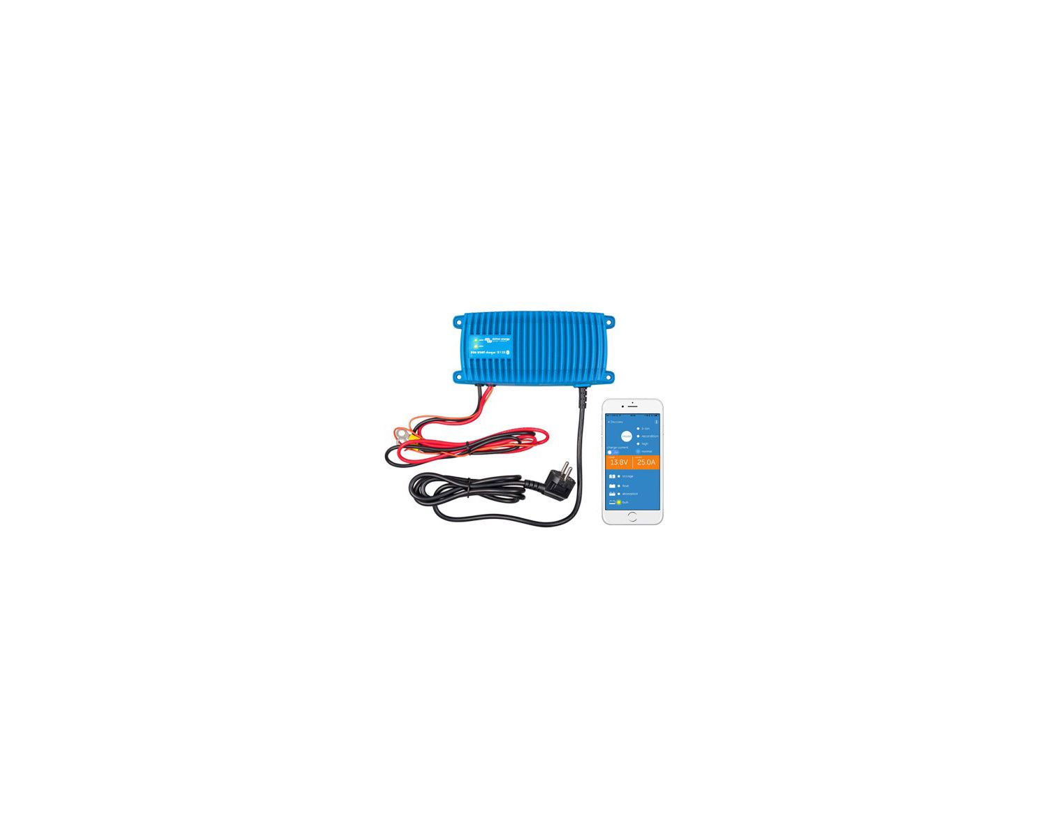 Le charguer Blue Smart IP67 est la solution sans fil permettant de surveiller la tension et le courant, de modifier des paramètres et de mettre à jour le chargeur lorsque de nouvelles fonctions sont disponibles.