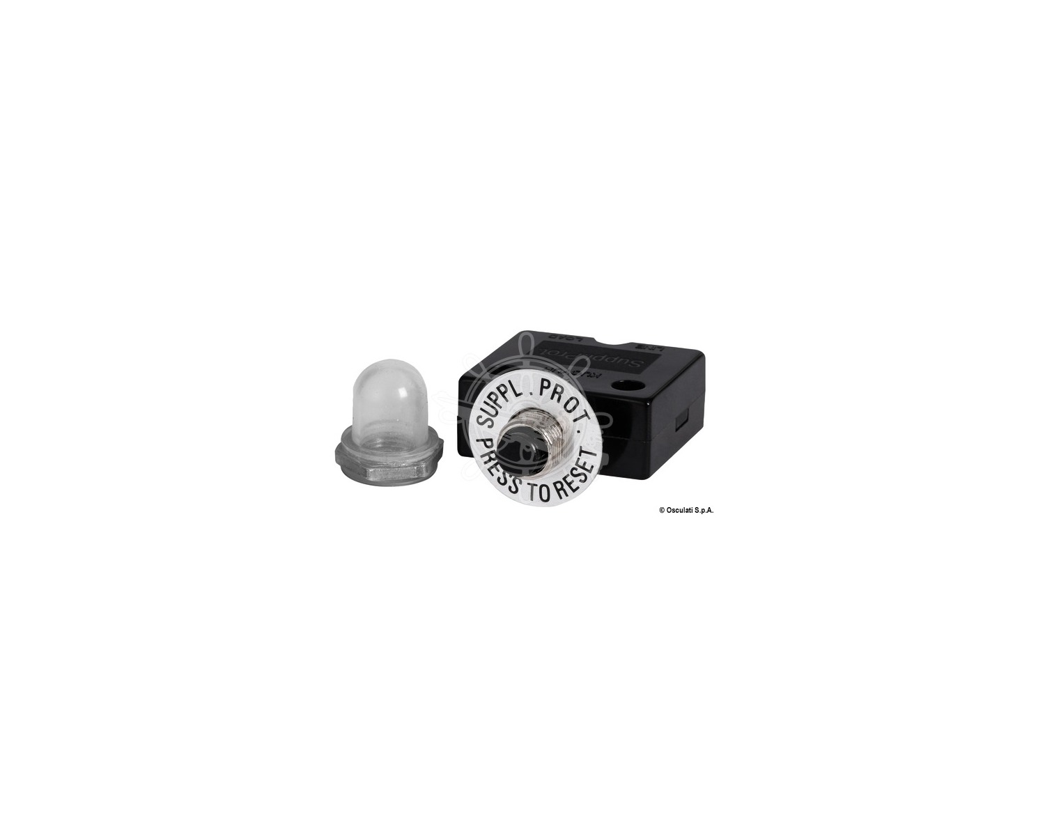 Ce disjoncteur thermique OSCULATI de 5 A est équipé de capuchons étanches en silicone transparent.