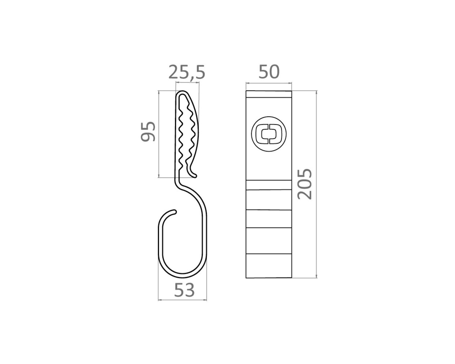 Crochet serre-câble pour guider le cordon d'alimentation et le tuyau de l'eau du quai au bateau.
