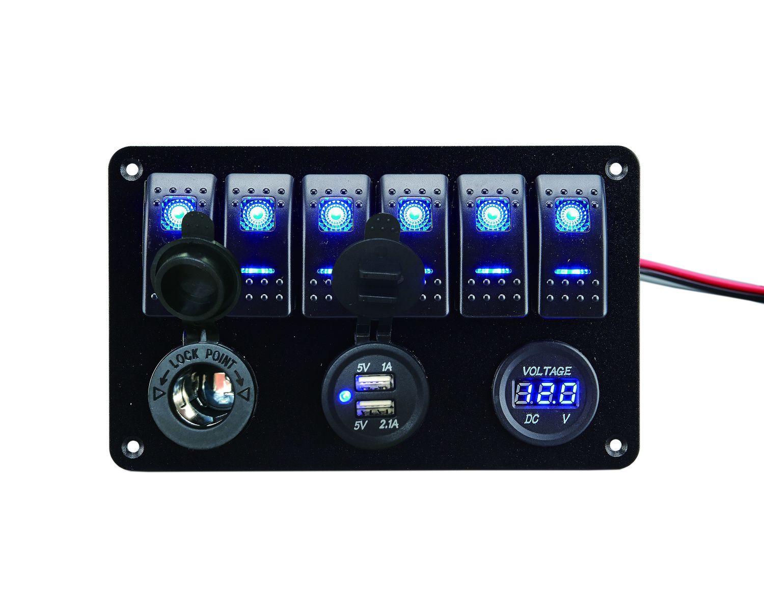 BIGSHIP Tableau électrique 12V 6 inter. LED + 2 ports USB + voltmètre + 1 port allume-cigare