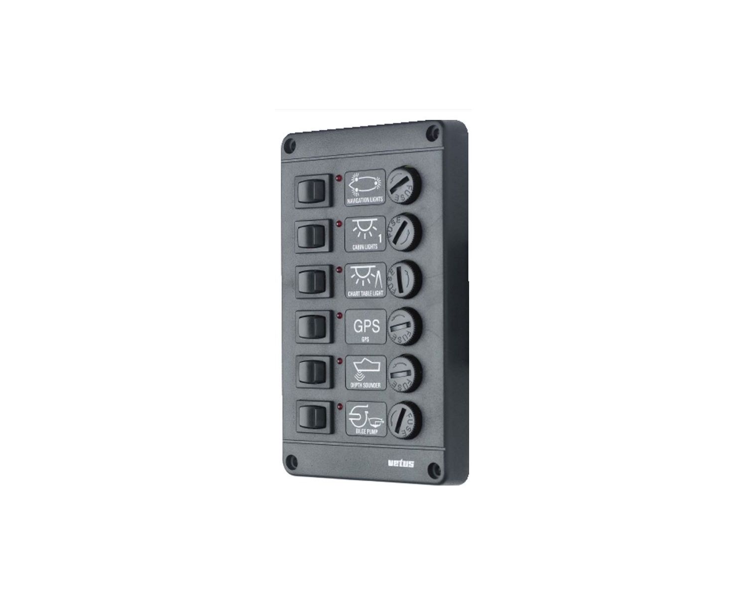 Ce tableau dispose de 6 interrupteurs à 2 positions, 6 repères L.E.D.
