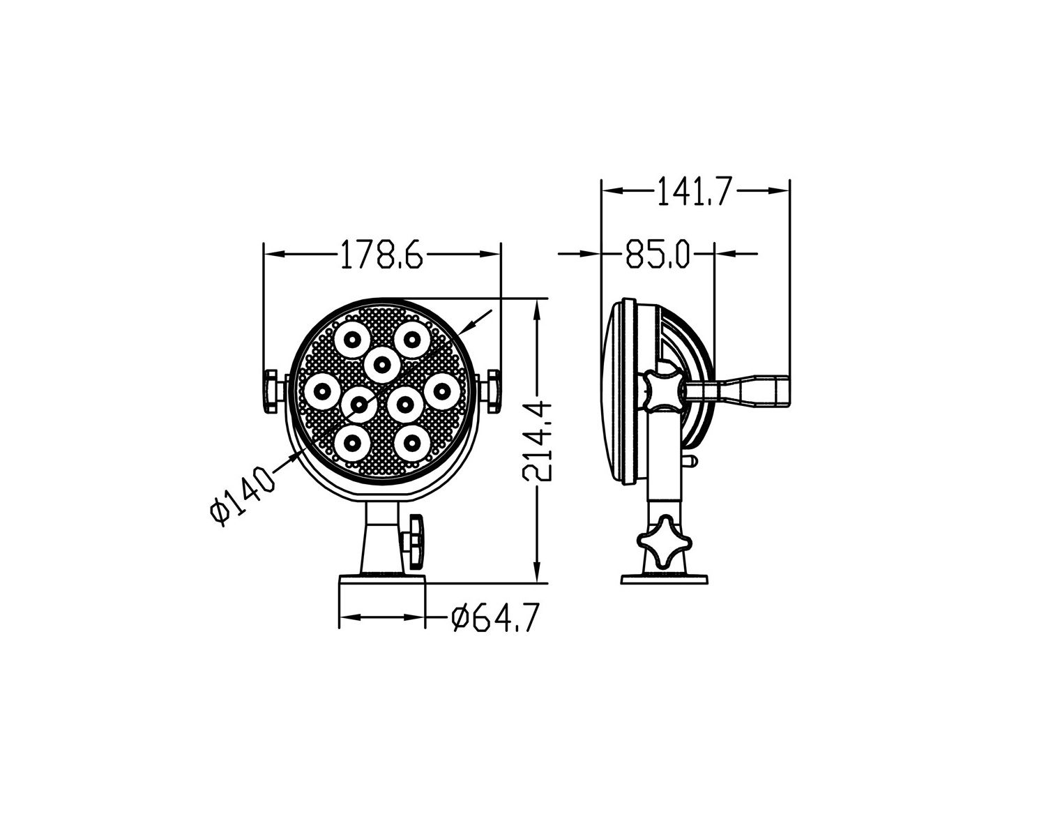 Diamètre du projecteur : 140 mm