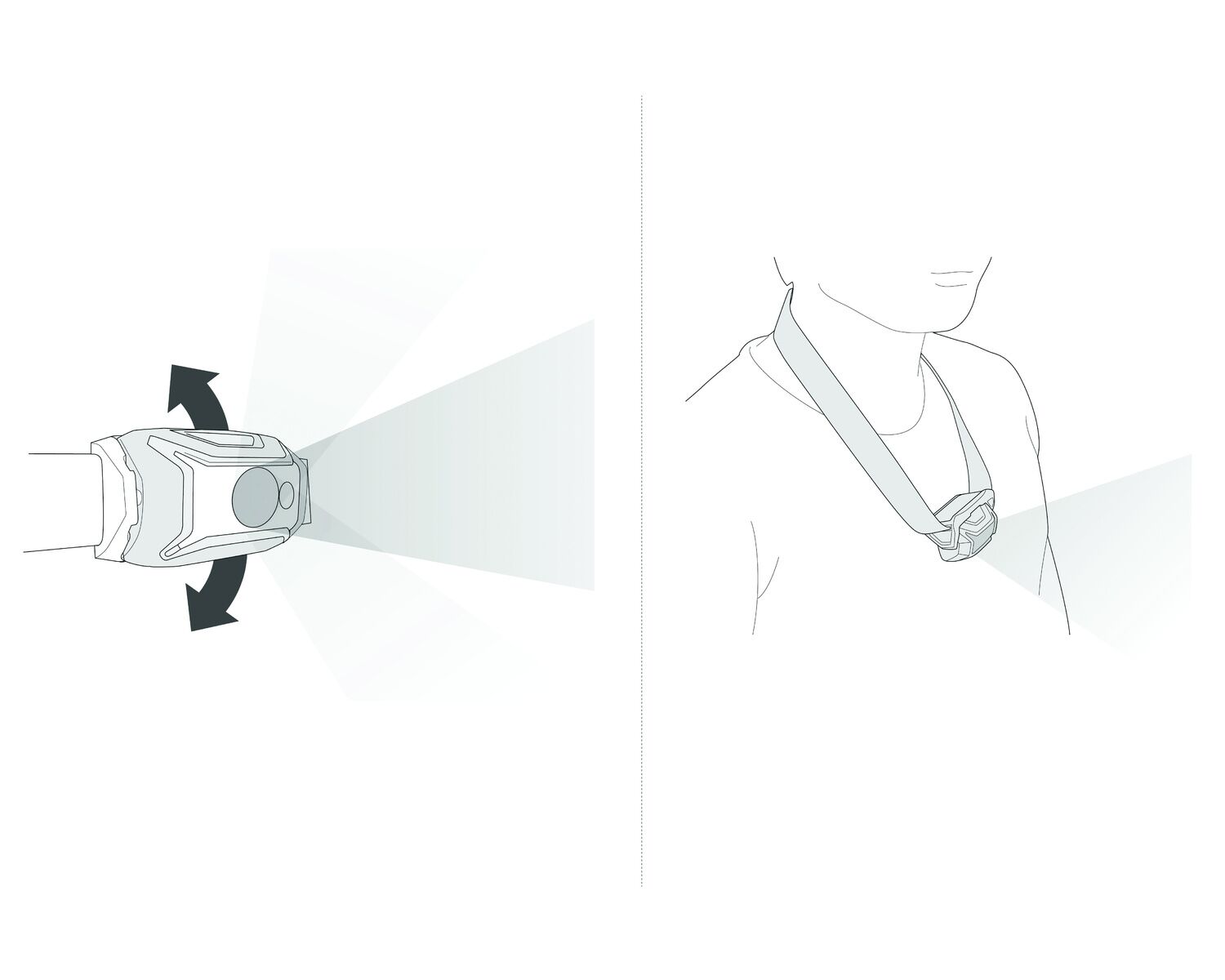 Lampe frontale compacte facile à utiliser avec éclairage rouge. 350 lumens.