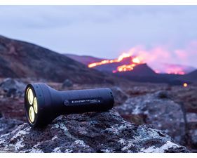 Le projecteur compact pour toutes les aventures en plein air peut également être placé sur l'embout et être ainsi positionné verticalement sur le sol ou sur une table.