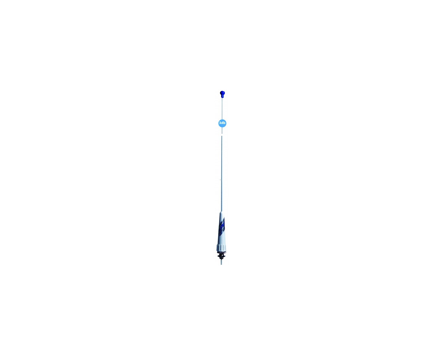 Antenne VHF 3dB 0m90, fouet en fibre. Fournit complet avec câble, support, connecteur, etc