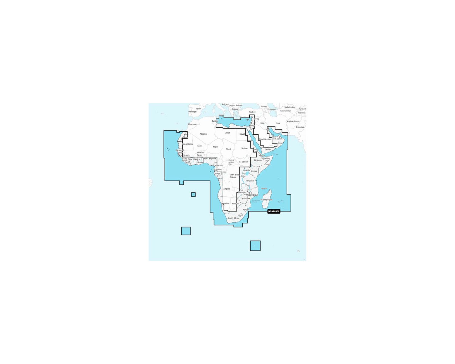 Couverture côtière de la côte africaine de Tripoli, Libye à travers la mer Rouge et autour du cap à Dakar, Sénégal, y compris le canal de Suez et le Levant, la côte de la péninsule arabique, le golfe Persique, Madagascar, Socotra, Zanzibar, La Réunion, Maurice, les Seychelles, les Comores, les îles du Prince Édouard, Tristan de Cunha, l'île Sainte-Hélène, l'île de l'Ascension, les îles du Cap-Vert, Malte et Chypre. Couverture de ports tels qu'Alexandrie, Égypte ; Djibouti; Manama, Bahreïn; Dubai; Cape Town, Afrique du Sud et Lagos, Nigeria sont inclus.