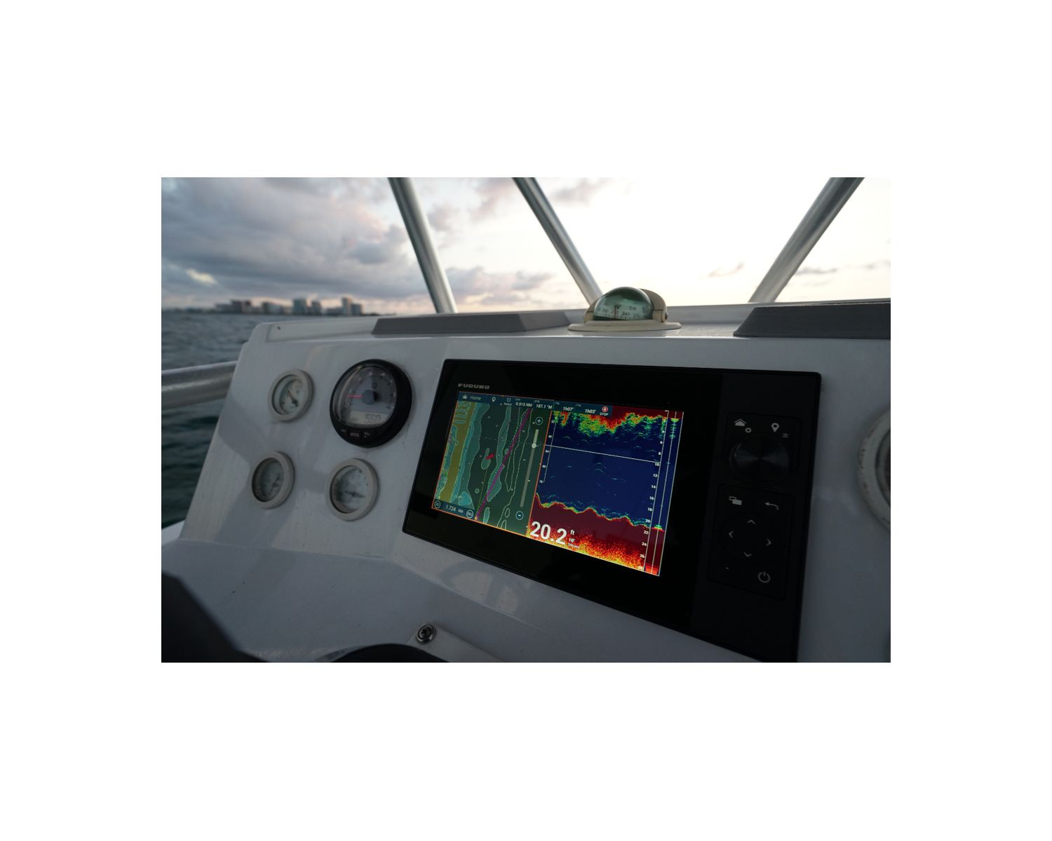 La TZT9F comprend un sondeur TruEcho CHIRP™ de 1 kW. Le TruEcho CHIRP™ de Furuno, conçu pour fonctionner sur une large gamme de fréquences à l'aide d'une sonde Broadband, offre des avantages significatifs en termes de clarté du signal et de définition descibles.