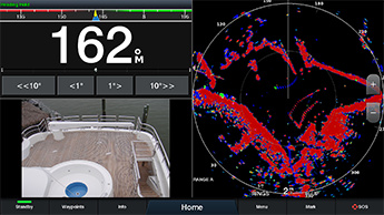 Sondeurs, radars, caméras, systèmes multimédias et commutateurs numériques peuvent être utilisés de manière autonome ou incorporés à la fonction SmartMode. Cette fonctionnalité SmartMode est conçue pour vous donner un accès rapide et direct aux informations dont vous avez besoin pour gérer les situations stressantes telles que le mouillage ou les amarrages.
