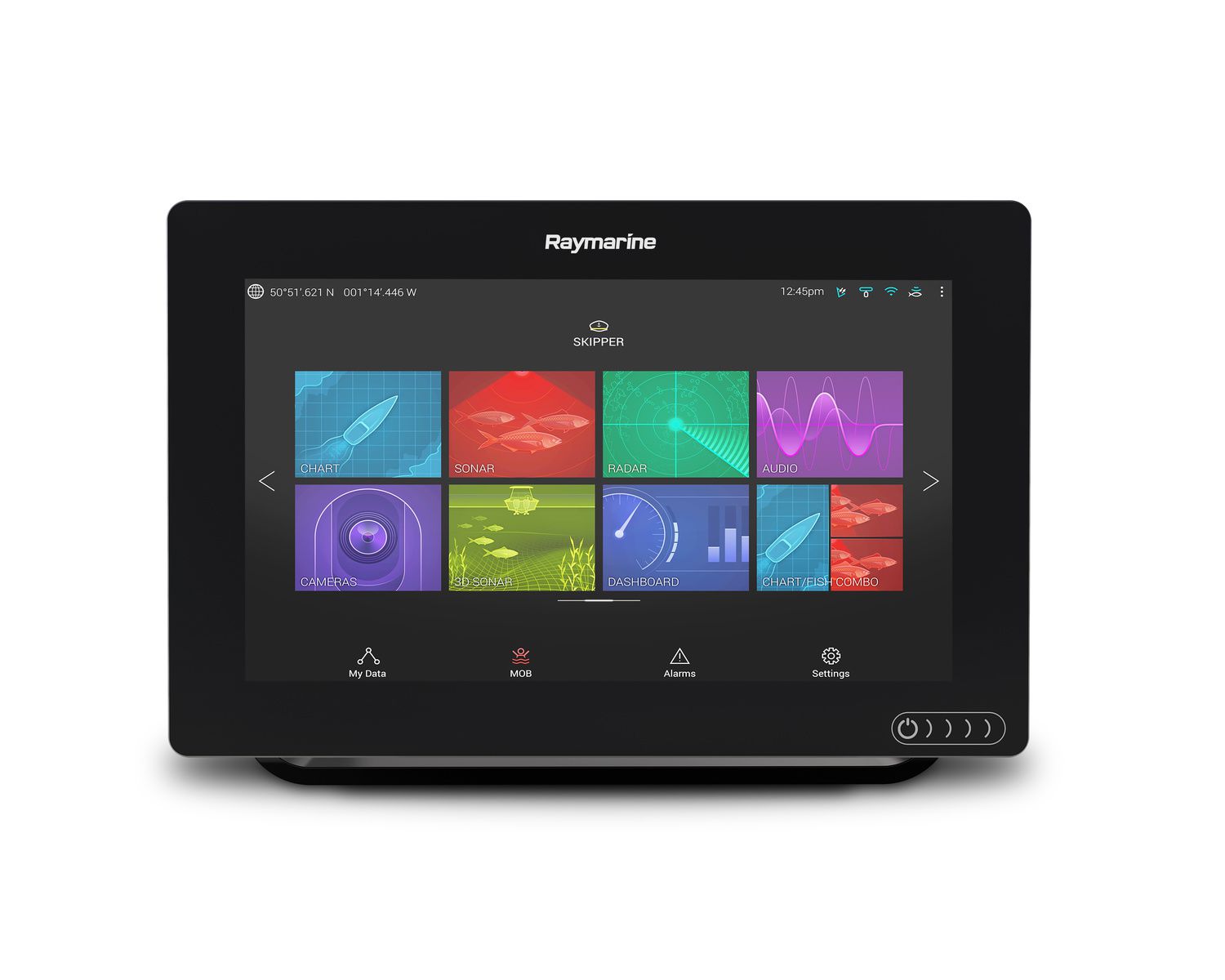 Il prend en charge la gamme complète des accessoires Raymarine, notamment le radar Quantum, le sonar CHIRP, les caméras thermiques FLIR, l'intégration audio, les instruments, les caméras et le pilote automatique Evolution.