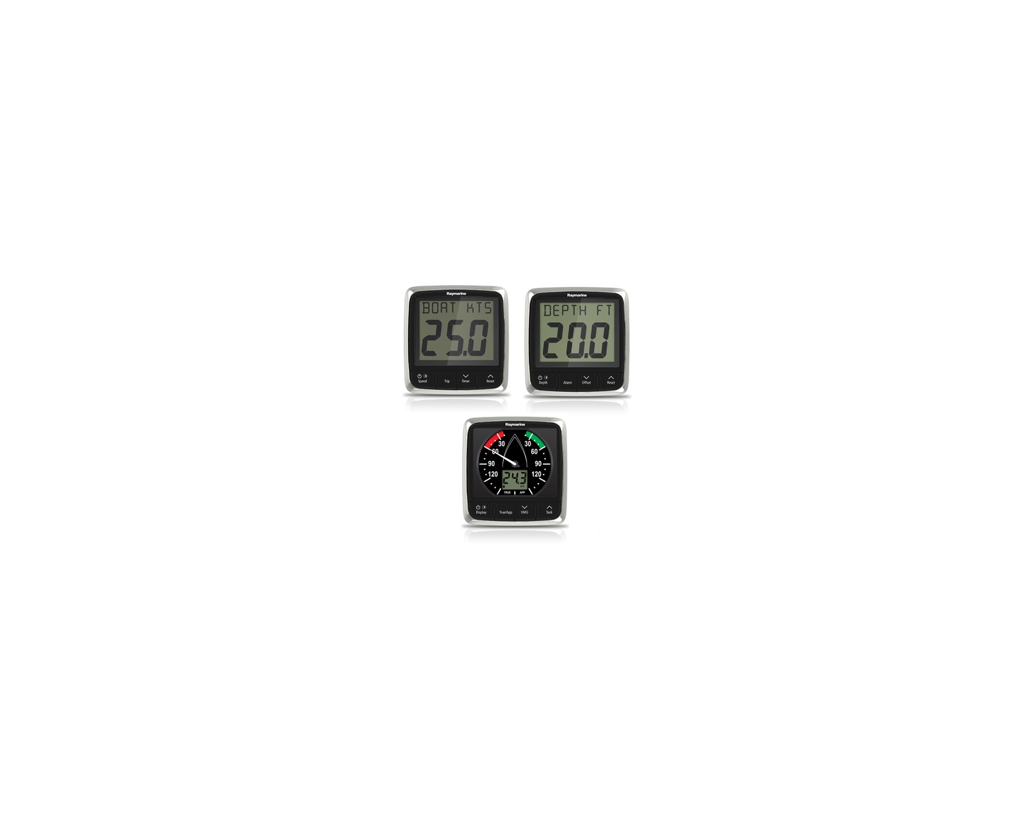 Pack complet Raymarine composé du i50 loch-speedo, du i50 sondeur, du i60 vent avec leur capteur.
