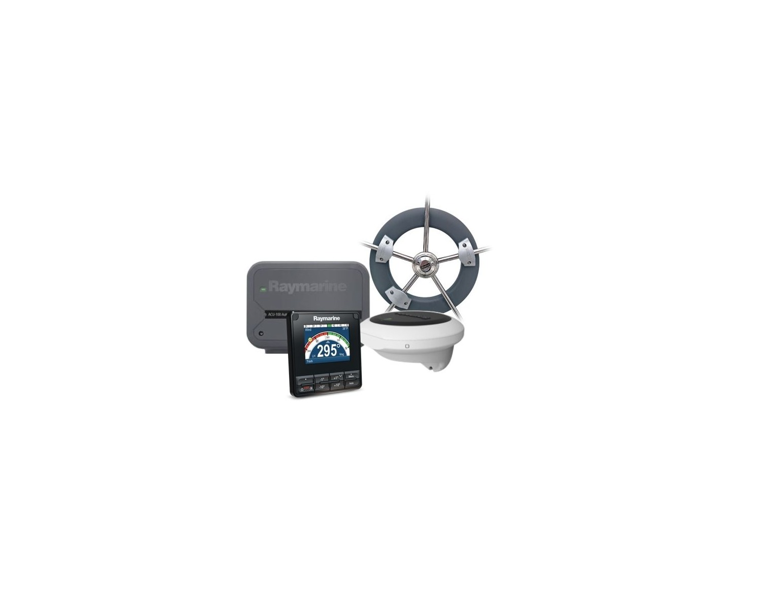 Pilote RAYMARINE Evolution de barre à roue pour voilier jusqu'à 7.5T de déplacement en charge. Composé d'un pupitre de commande p70S, d'un capteur EV1 (9 axes 3D) et d'une unité de puissance à fixer sur la barre à roue.