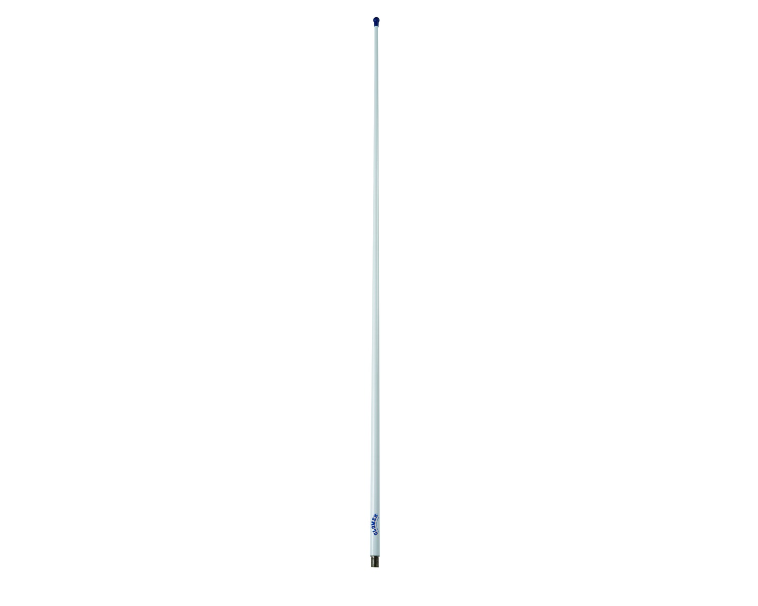 Glomex veut simplifier la vie aux plaisanciers en leurs offrant une antenne universelle VHF robuste, performante et facilement adaptable pour chaque exigence. La nouvelle antenne, réalisée avec les meilleures matières premières, se compose d’une canne en fibre de verre, résistante aux contraintes, traitée avec un matériel anti-jaunissement, qui protège les éléments internes en laiton. Longue 1,2m avec un gain de 3 dB, l’antenne est indiquée pour l’installation en tète de mât du bateaux afin d’avoir la meilleure performance de réception et de transmission, et aussi, grâce aux diverses options de supports, peut être installée également sur des bateaux à moteur. Sur l’extrémité inférieur, l’antenne dispose d’une virole filetée 5/8”x24 à laquelle on peut brancher des équerres et supports pour une installation extrêmement facile et rapide et le nouveau câble coaxial RG8X de Glomex, de haute qaulité, à faible perte et de différentes longueurs avec un connecteur spécial FME, professionnel et miniaturisé déjà inséré dans les deux extrémités. Si, toutes fois, il est nécessaire d’avoir une antenne plus longue, vous pouvez utiliser la nouvelle extension construite avec les même matériaux robustes sous-ensembles de l’antenne VHF pour obtenir une esthétique exceptionnelle.