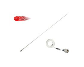 2,4m Antenne VHF à haute performance avec embase en acier inox, passe-fil intégrée en acier inox, câble coaxial de 7,6m avec connecteur FME pré-câblé et adaptateur PL-259.