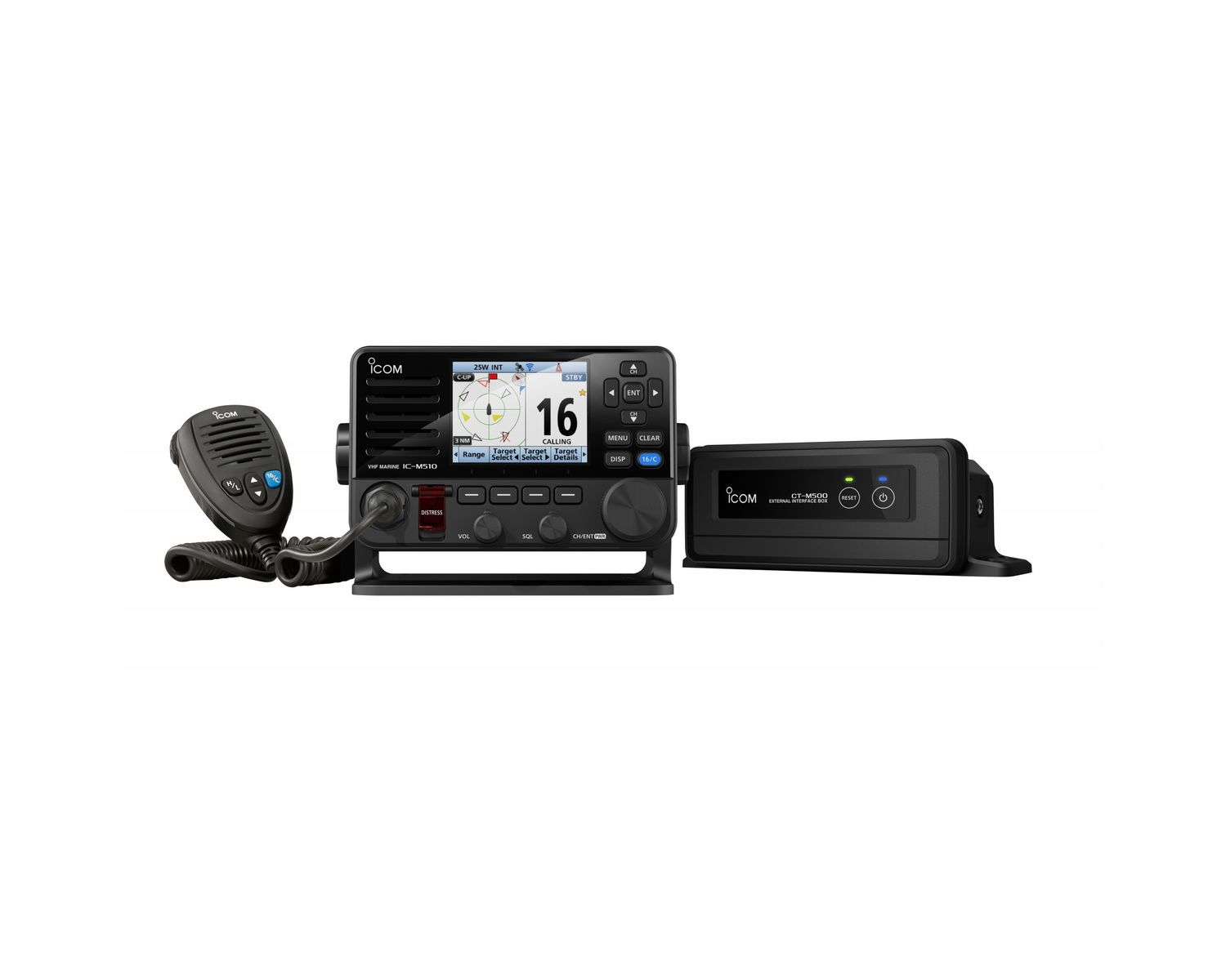 VHF marine fixe 156-163MHz, 25W, avec ASN Classe D, IP68, récepteur GNSS avec antenne intégrée, connecteur pour antenne extérieure optionnelle, Wi-Fi et AIS intégrés, écran couleur grand angle TFT LCD, mode nuit, réducteur de bruit actif. Pilotable à partir de votre smartphone ou tablette avec l’application RS-M500 grâce au Wi-Fi intégré. Compatible avec interface optionnelle CT-M500 pour fonctionnalités complémentaires (interface NMEA 2000, amplificateur audio externe et porte voix avec fonction RX).