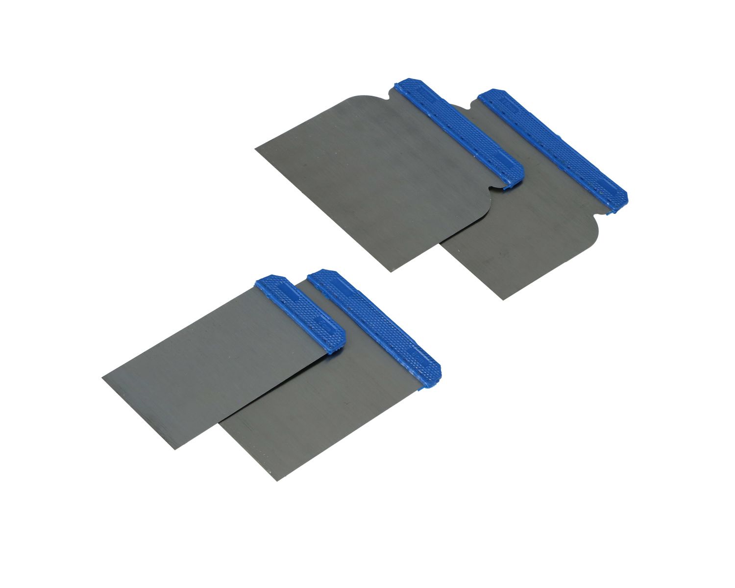 Kit de 4 couteaux à enduire pour application des mastics polyester et époxy.