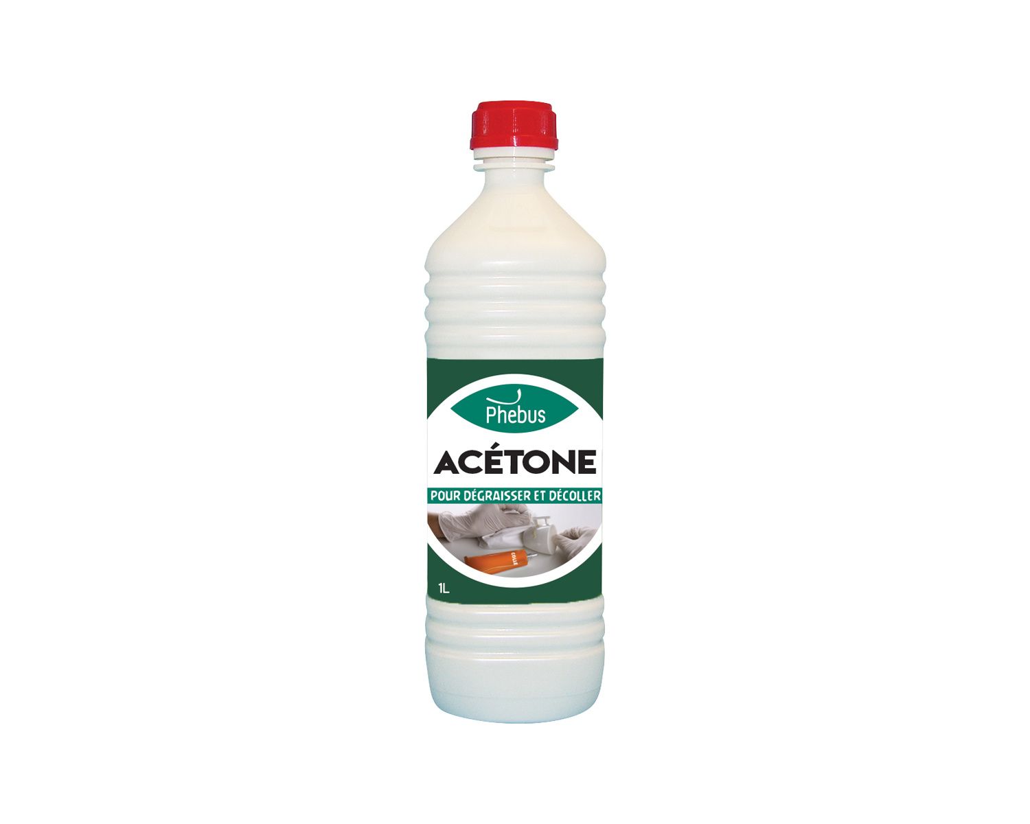 L’Acétone est un excellent dissolvant pour colles, vernis, peintures et mastics cellulosiques. Il permet également d’éliminer les traces de colle, vernis, feutre, encre, chewing-gums sur les tissus ainsi que de retirer les autocollants et autres revêtements adhésifs sur les vitres, pare-brises, murs, sols, etc.