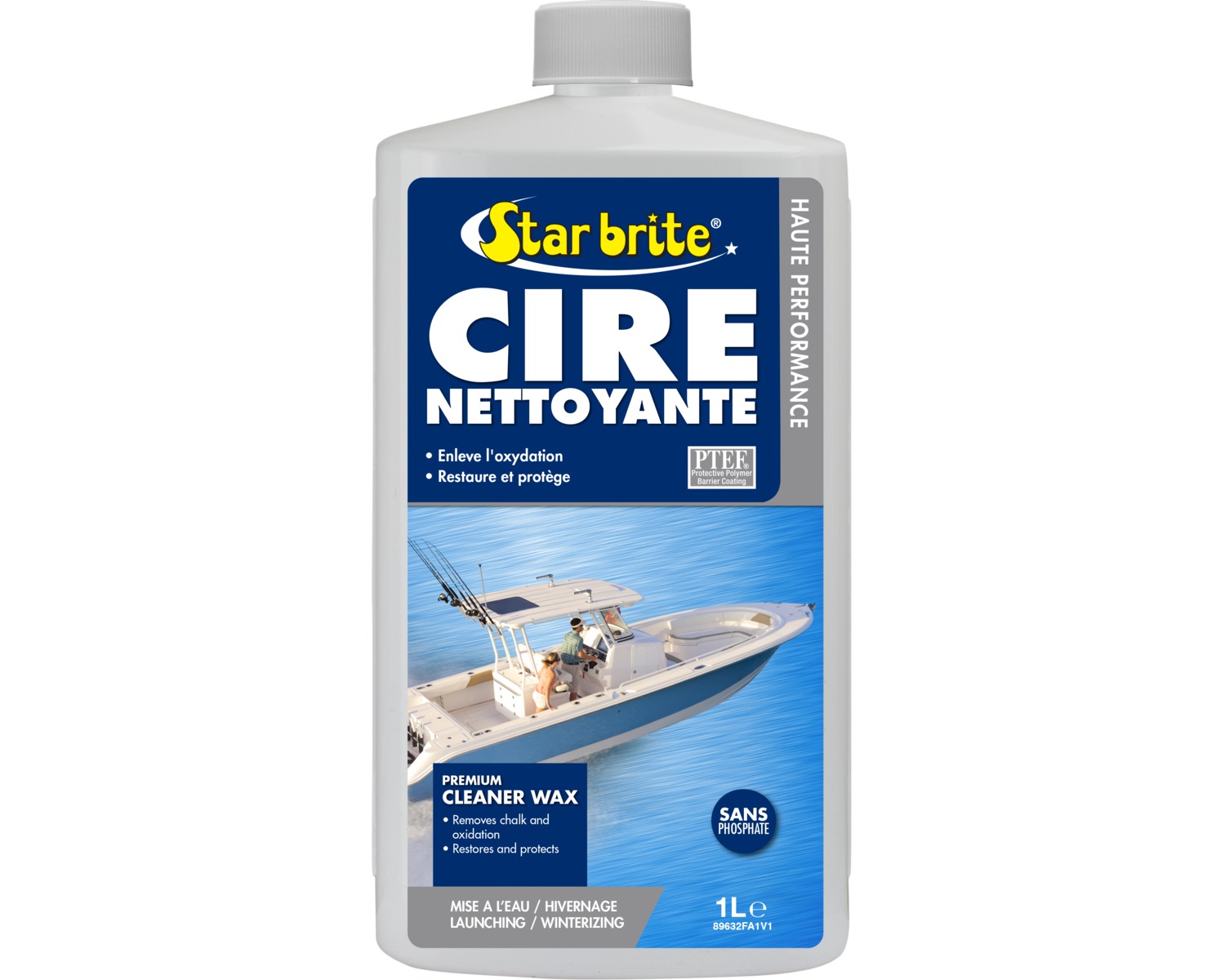 Nettoyer d'abord le bateau pour enlever la saleté puis sécher parfaitement. Bien agiter la bouteille avant l'emploi. Appliquer le produit en frottant fermement de manière circulaire à l'aide d'un chiffon en cotton ou d'une serviette. Bien frotter pour enlever l'oxydation, la craie et les taches tant que le polish est humide. Appliquer par petites sections à la fois pour assurer un traitement uniforme. (Nota: Pas besoin de frotter fort sur la plupart des surfaces. Seules les surfaces très oxydées peuvent nécessiter de frotter plus fermement et plusieurs fois.) Star brite Nettoyant et Cire au PTEF® séche rapidement pour former un voile. Essuyer ce voile à l'aide d'un chiffon propre et sec. A cause de la porosité de la fibre de verre, de l'oxidation résiduelle peut apparaître au bout de 10 à 20 jours impliquant un nouveau traitement de Nettoyant et Cire. Une fois le gelcoat restauré, appliquer le Premium Polish au PTEF® pour assurer une longue protection.