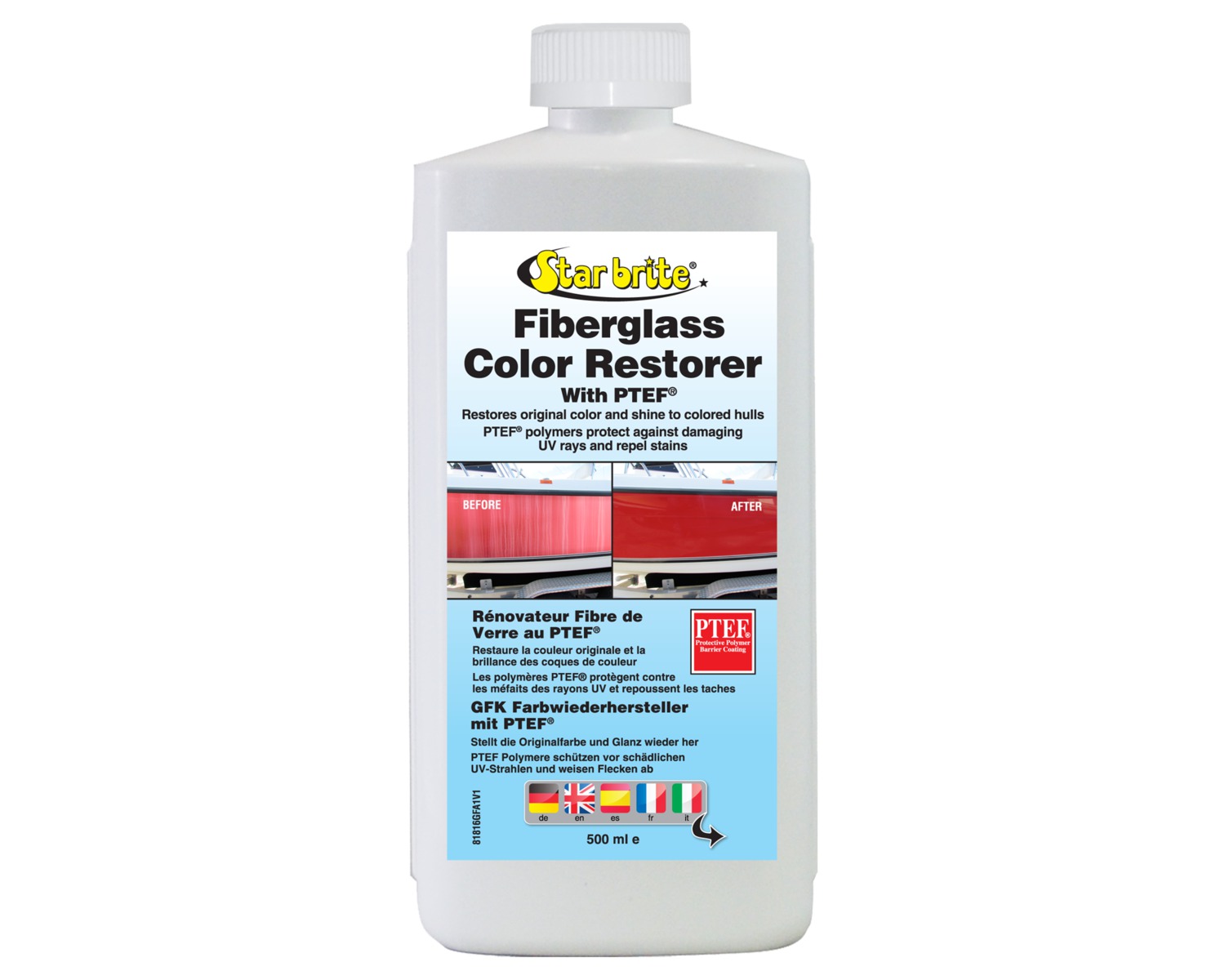 Fiberglass Color Restorer ce rénovateur pour fibre de verre STAR BRITE redonnera la couleur et l’éclat d’origine à votre bateau et enlèvera toute trace d’oxydation, de craie .