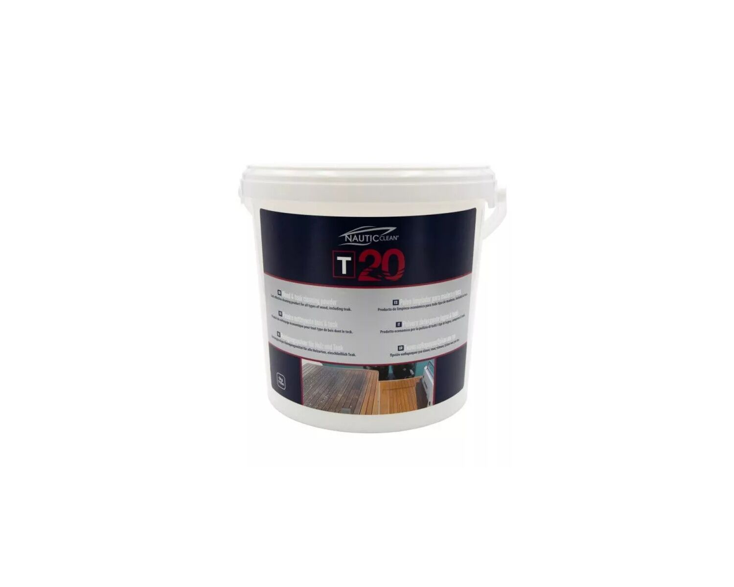 Le produit de nettoyage pour bois et teck T20 - Nautic Clean est un agent nettoyant concentré spécifiquement élaboré pour le lavage et le dégagement des surfaces en bois, notamment du teck, dans un environnement nautique.