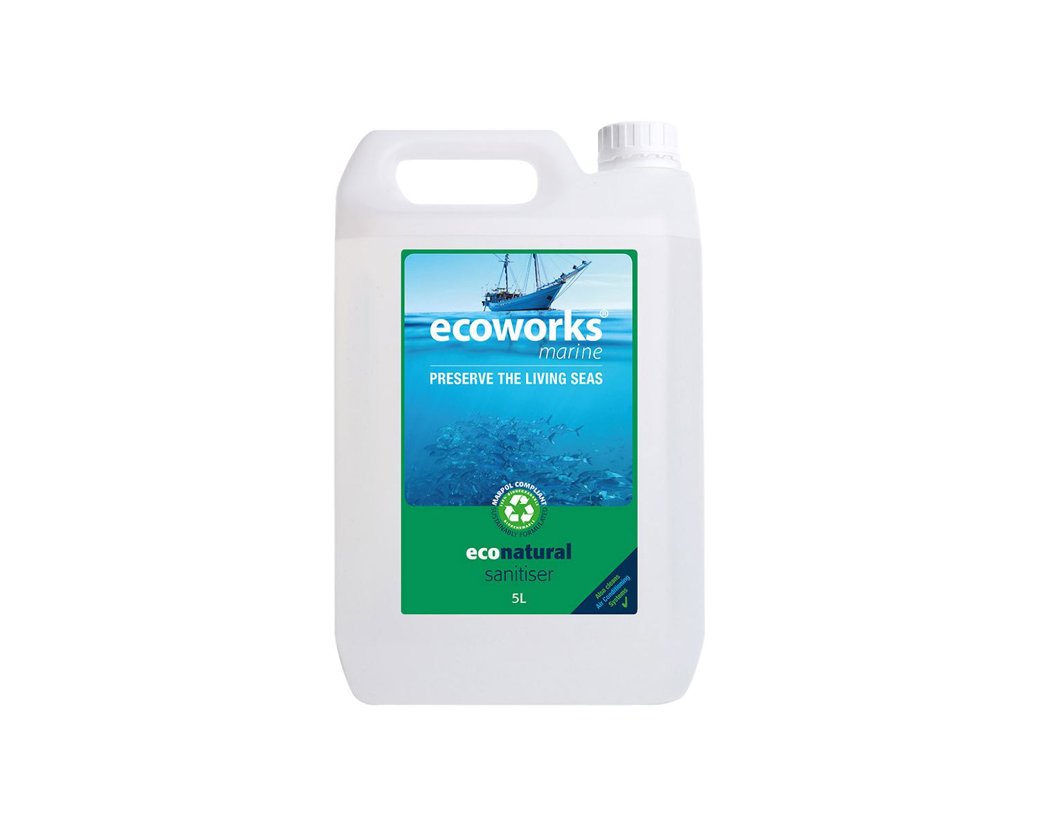 Ecoworks® Marine Eco désinfectant naturel est un désinfectant de surface dure formulé pour tuer les bactéries et autres micro-organismes. Le produit est prêt à utiliser et ne nécessite pas de dilution.
