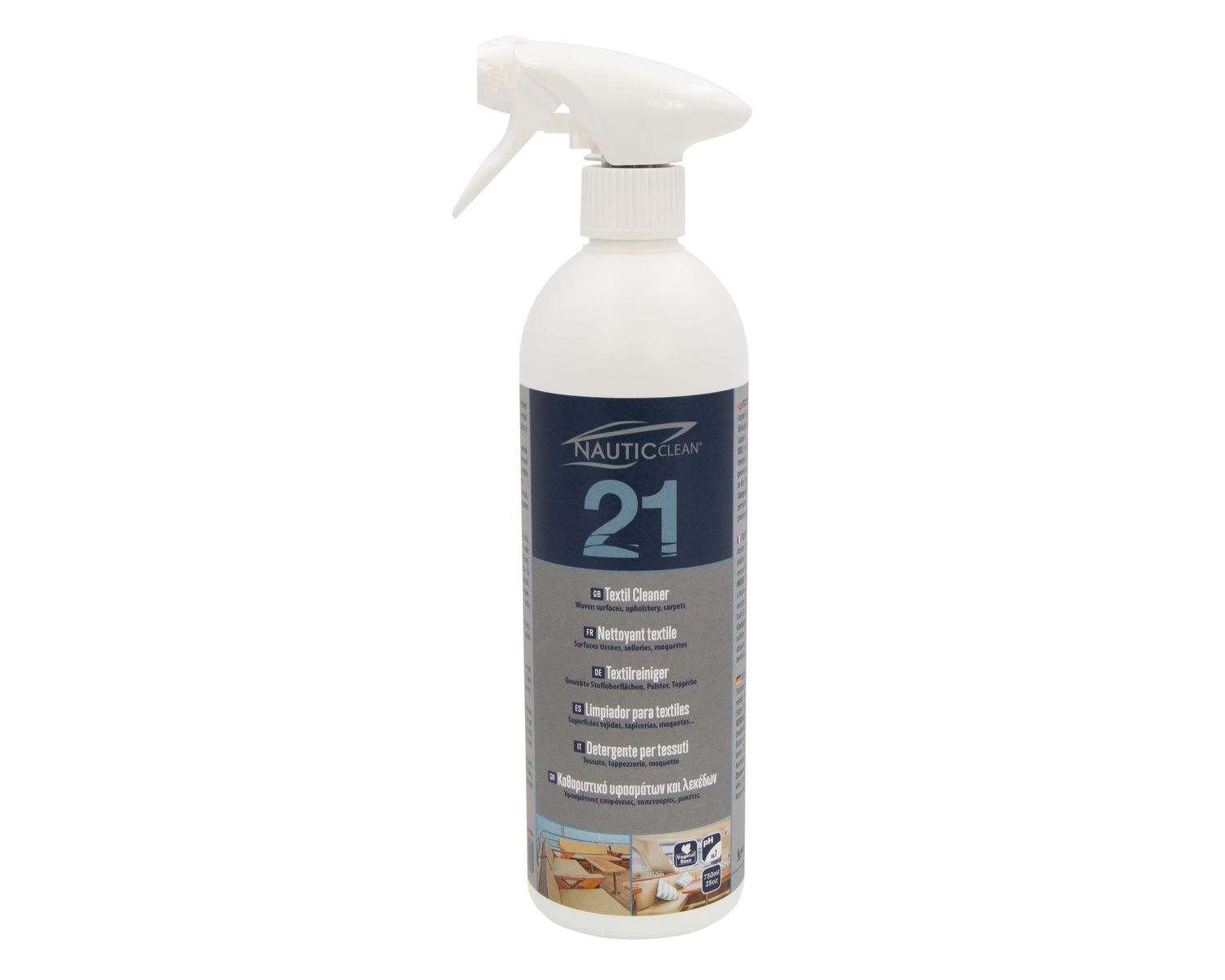 Nautic clean 21, nettoyant textile, est un nettoyant détachant pour les surfaces tissées, skaï, selleries de bateaux.