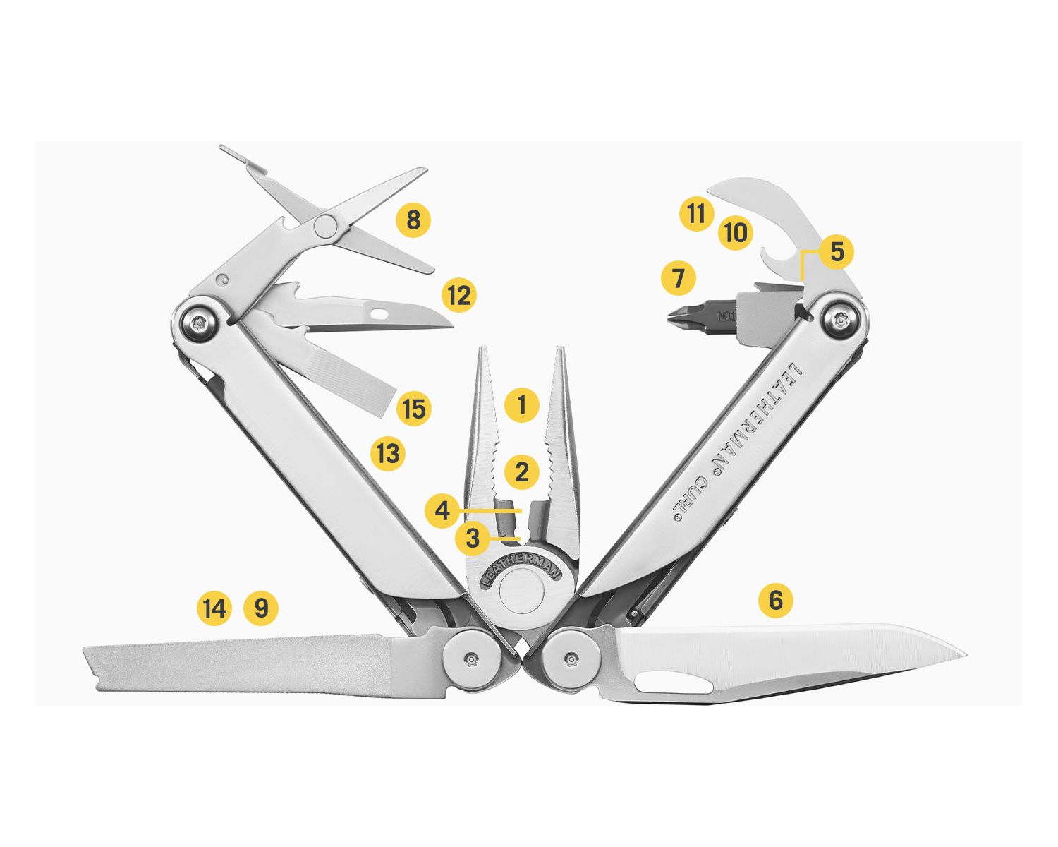Classique et performant. Le Curl regorge de fonctionnalités emblématiques de Leatherman, tout en restant adapté aux utilisateurs novices. Il est équipé de 15 outils différents, dont une lame de couteau ultra-tranchante accessible d’une seule main, des ciseaux à ressort et de notre prise pour embouts personnalisable.