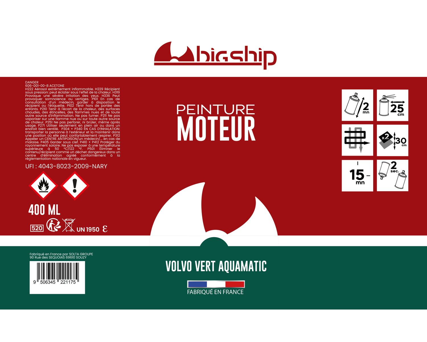 Aérosols permettant de repeindre moteurs ou accessoires, teintes d'origine.