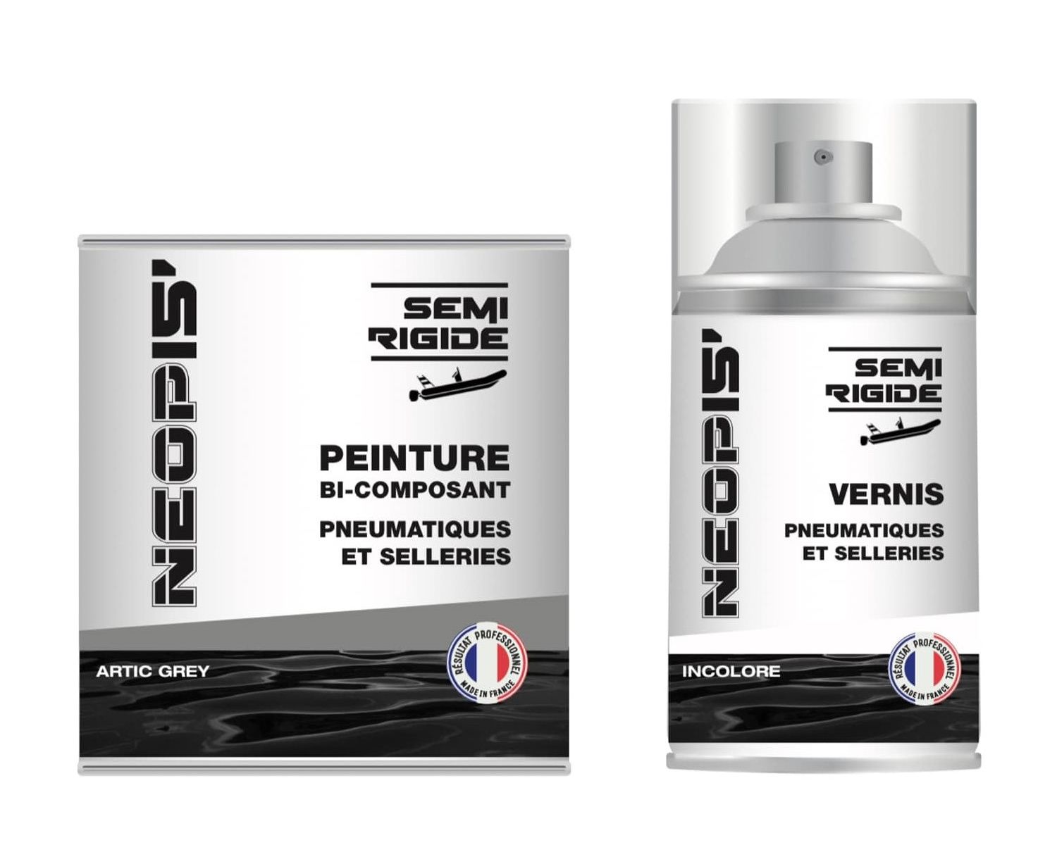 Peinture bi composant avec durcisseur intégré pour les flotteurs de semi-rigides en PVC et néoprène.
