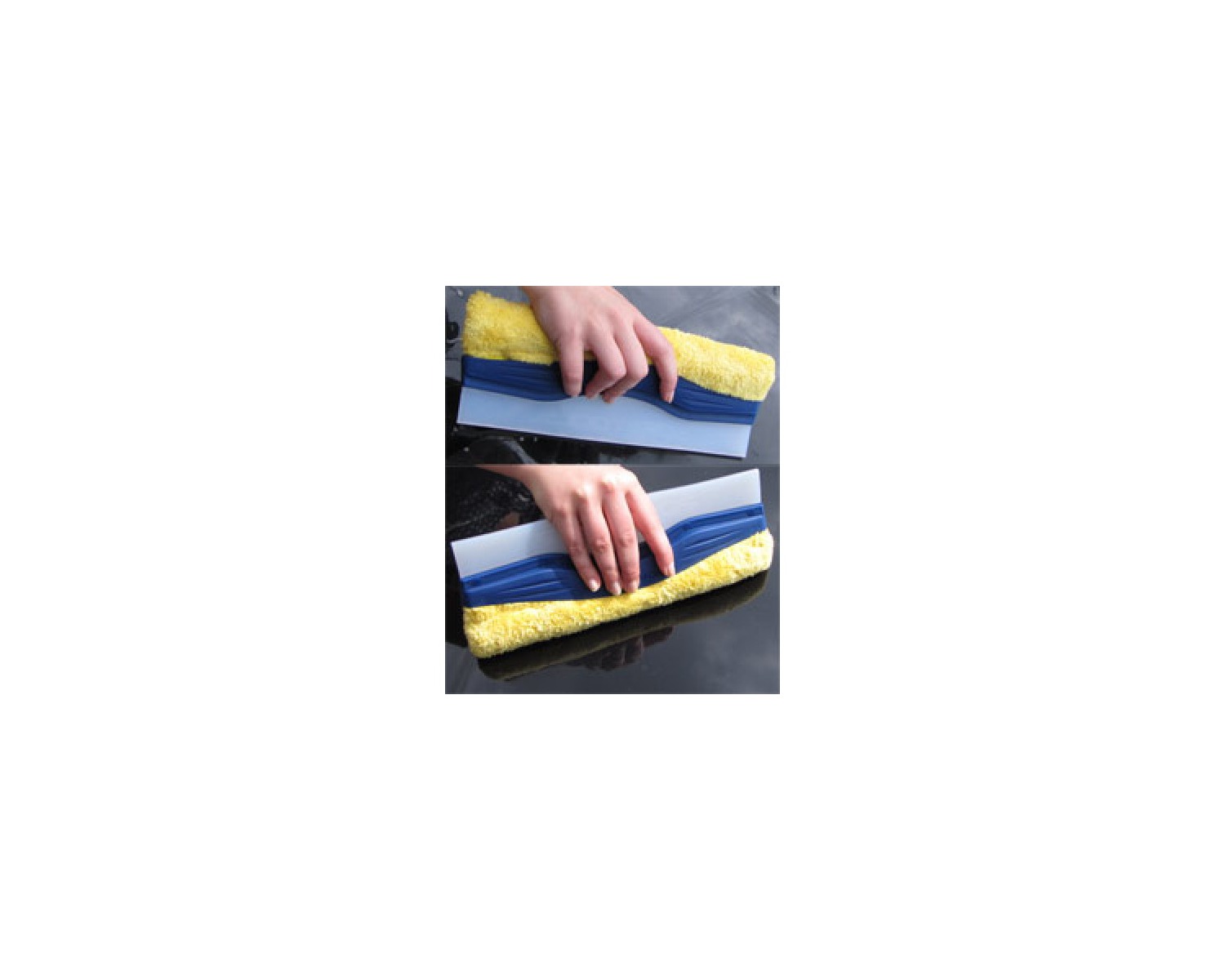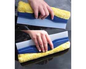 L’effet DUO est obtenu par la combinaison du côté doux en microfibres pour laver les vitres et du côté en silicone qui garantit un séchage rapide.