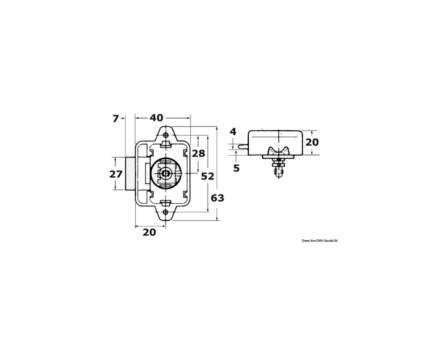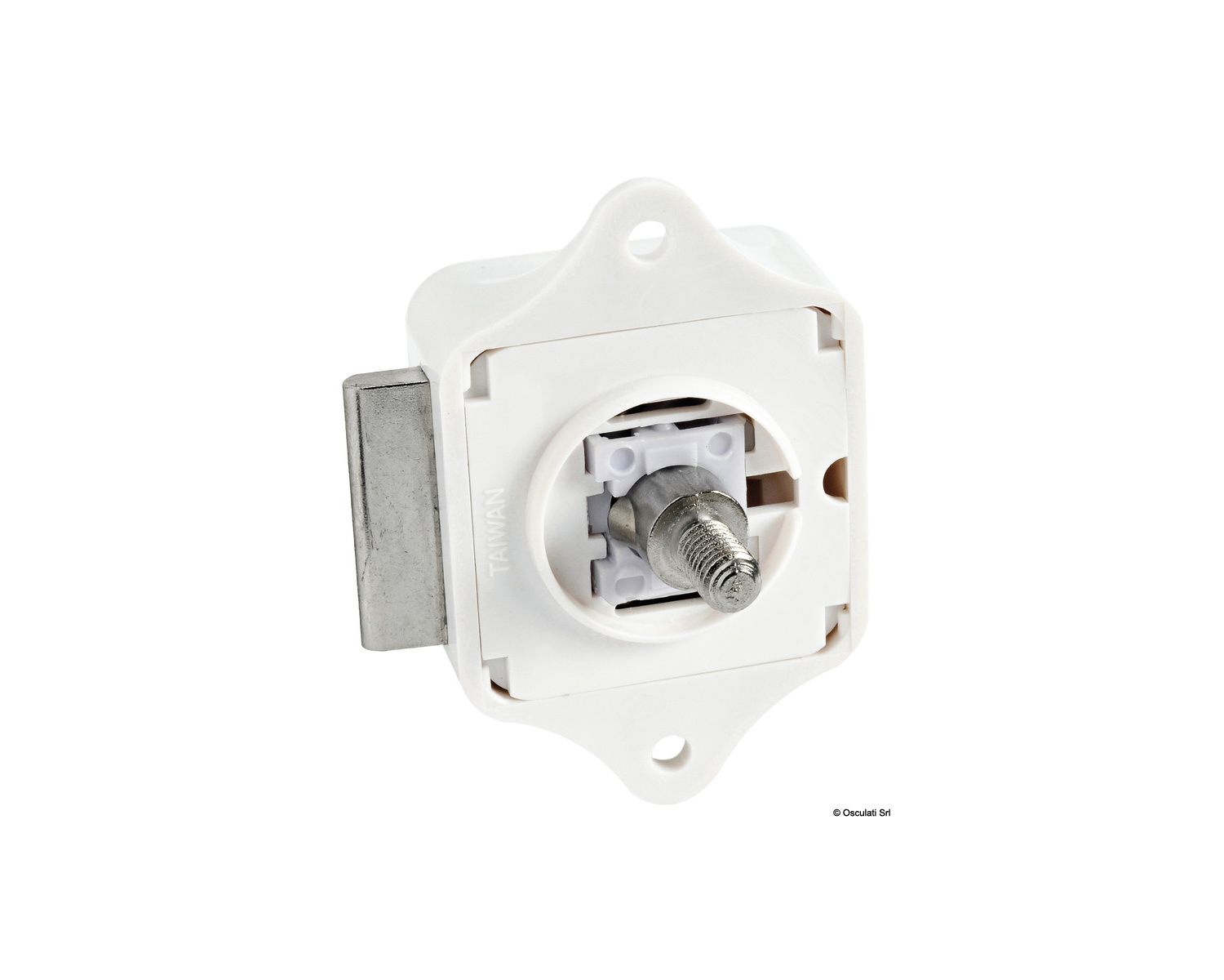 Déclic pour sabords et portes avec système d'ouverture par pression. Avec 4 entretoises + 1 joint.
