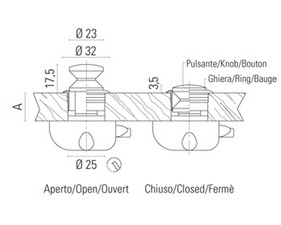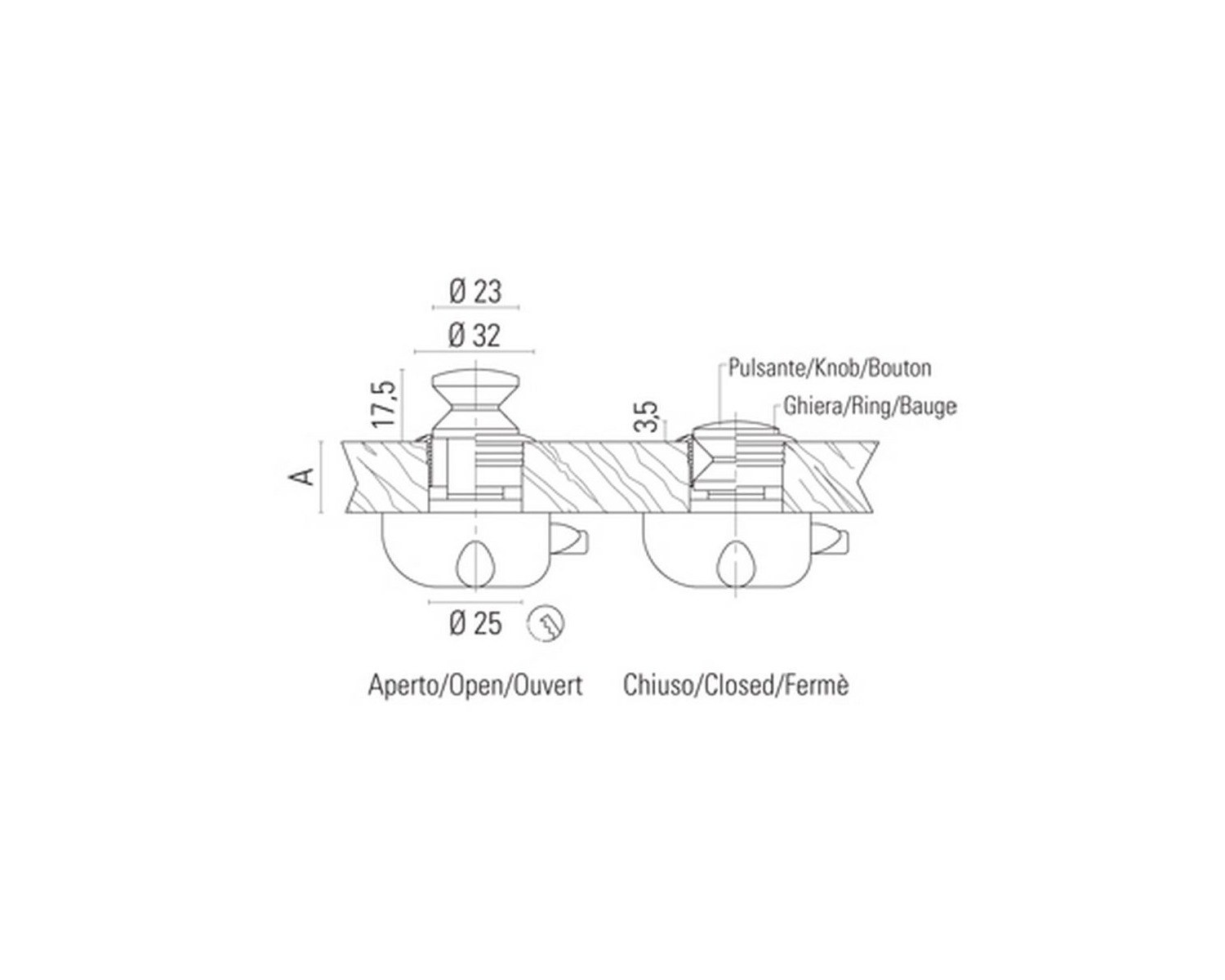 Bouton poussoir pour serrure standard placard ou tiroir.