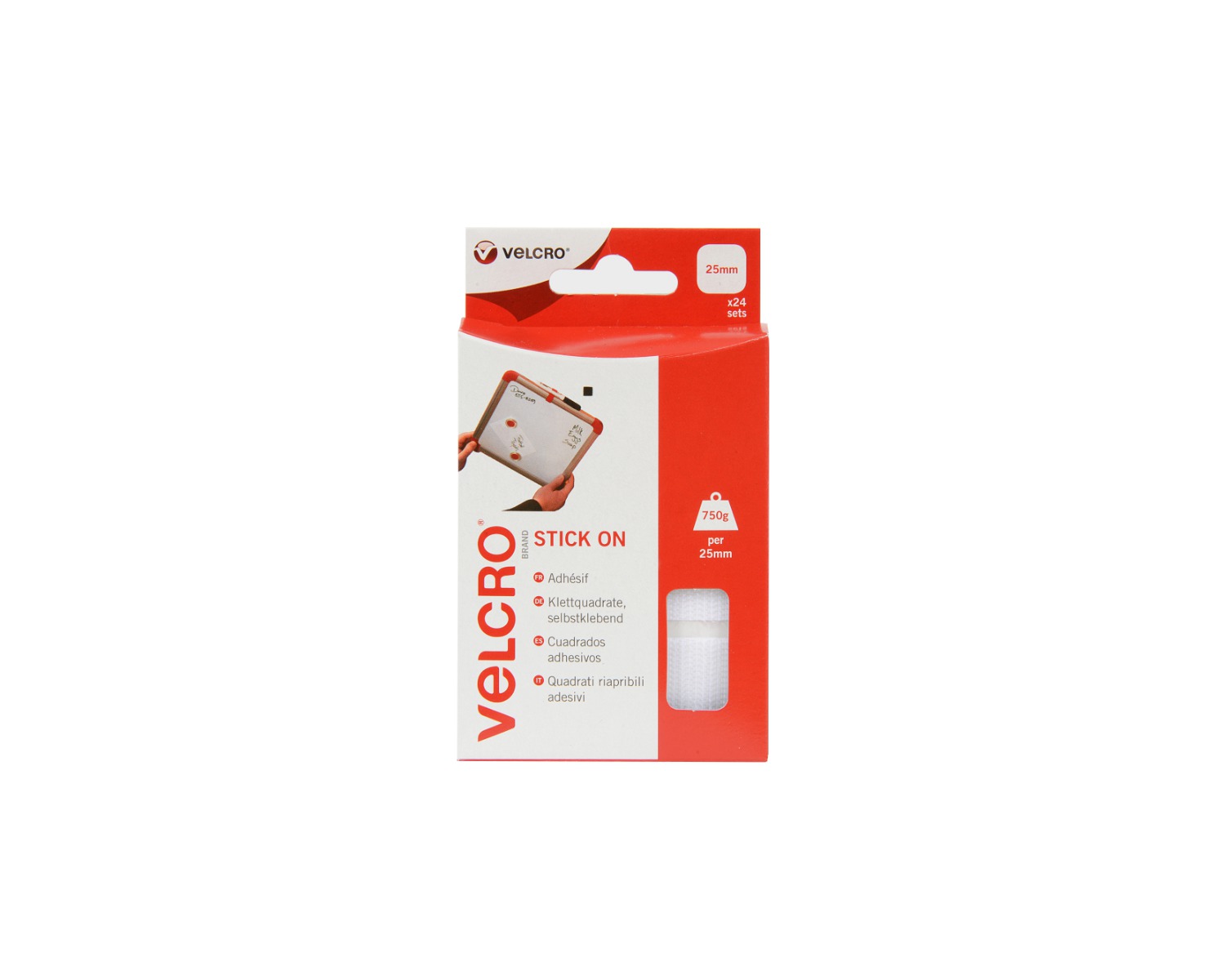 Carré adhésif auto-agrippant blanc 25x25mm (x24)