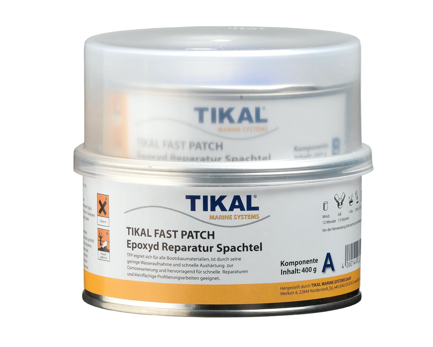 Mastic bicomposant, à durcissement rapide EP Filler pour tous les substrats tels que fibre de verre, bois, acier ou aluminium au-dessus et en dessous de la ligne de flottaison. Facile à mélanger et très approprié pour réparer des zones attaquées par l'osmose raison de sa faible absorption d'eau. TIKAL PATCH FAST est excellent pour des réparations rapides ou des travaux de profilage à petite échelle . Comme il durcit rapidement, il convient tout particulièrement pour les réparations sur la plupart des coques. Volume : 600 g. Coloris : gris clair.