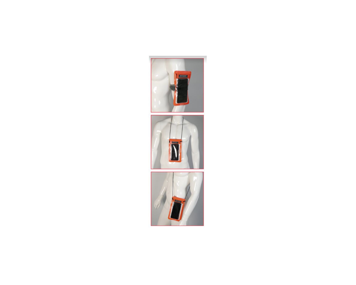 Pochette téléphone 100% étanche et submersible. Elle est munit d’un tour de cou reglable et d’un brassard strap elastique.