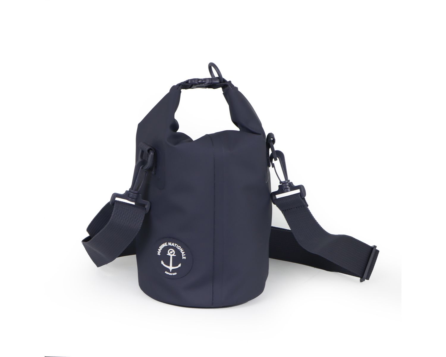 Pouvant se porter à la main ou à l’épaule grâce à une sangle amovible, il est personnalisé du logo de la marque Marine nationale ainsi que du lettrage « Marine nationale » sur la hauteur.