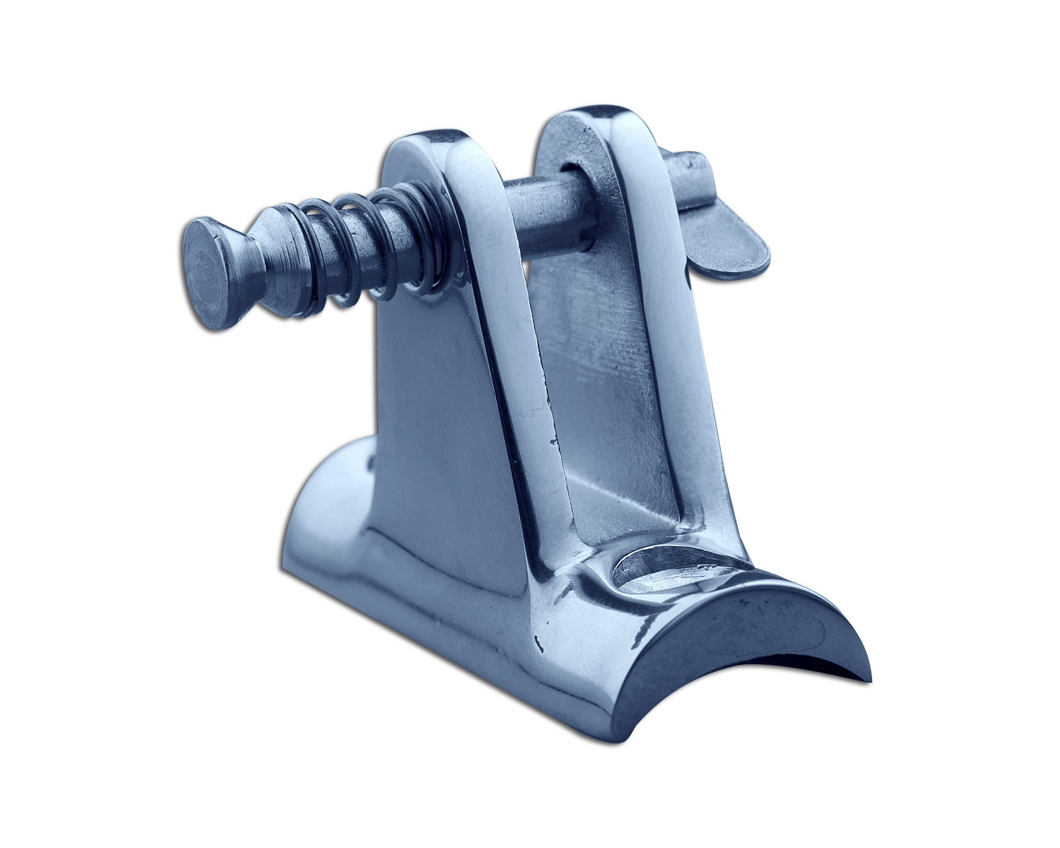 Platine inox de tube d'articulation droite avec axe pour bimini. Permet une installation sur une main courante.