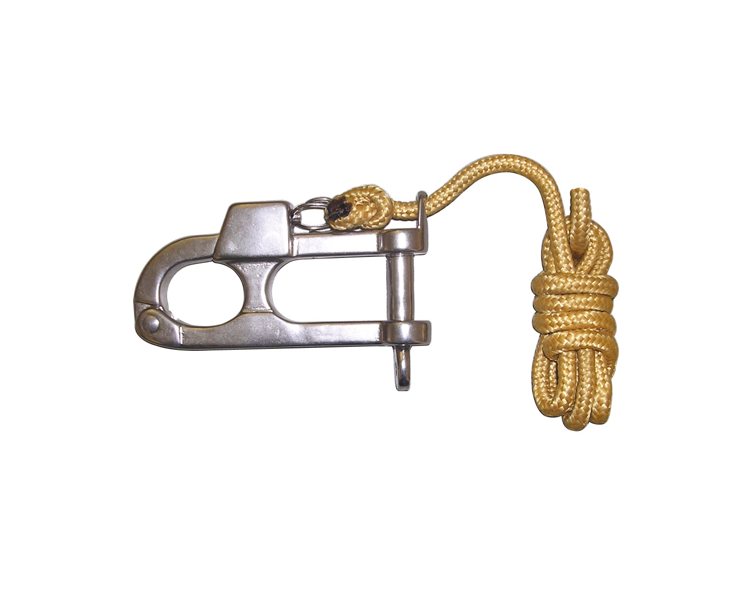 Cette boucle de largage rapide est très large. Elle comprend une corde et un bracelet en bande auto-agrippante. Cette boucle s'adapte sur toutes les attaches rapides des bouées.