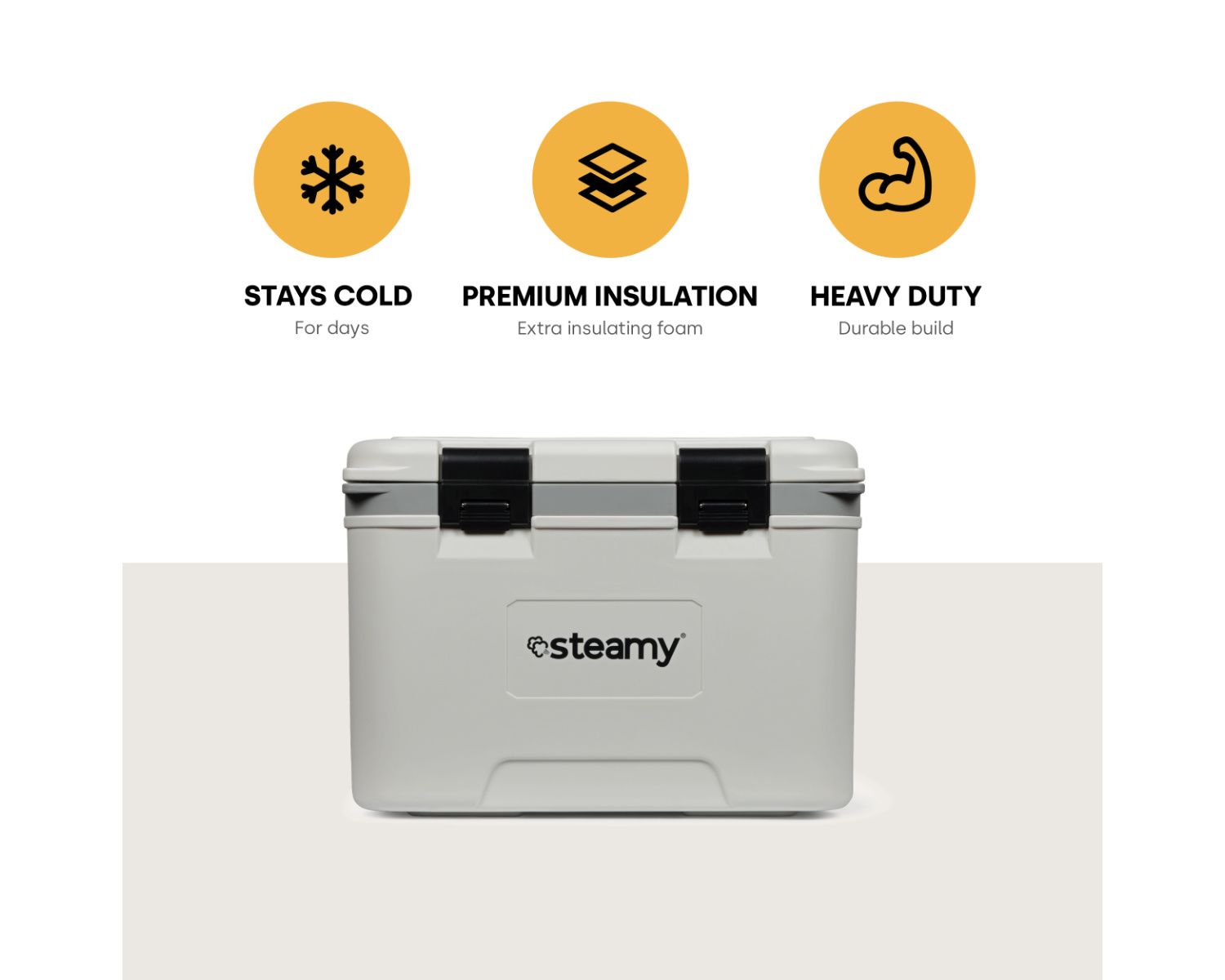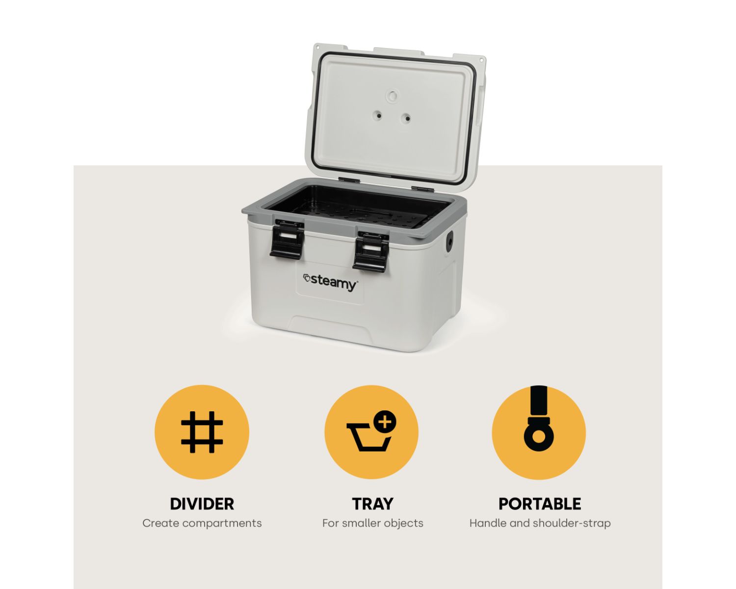 La construction durable de la Steamy Marine 21 résiste aux défis de l'environnement marin et, grâce à une isolation en mousse de première qualité tout autour, la glacière maintient le contenu au frais de manière optimale. Le design blanc ajoute une touche maritime et rend la glacière facilement reconnaissable à bord.