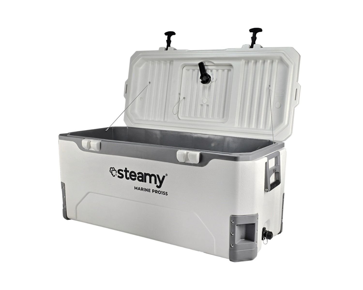 Le Steamy Marine Pro 155 a une capacité de 155 litres, soit plus que suffisant pour toutes vos activités. Avec son énorme capacité de stockage, il offre de la place pour toutes vos boissons, collations et bien plus encore, tandis que l'isolation de haute qualité garantit que tout reste à la bonne température.