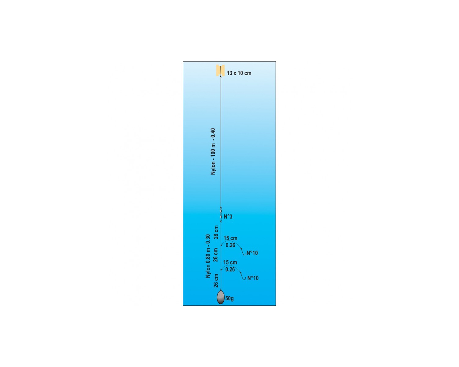 Palangrotte complète vendu avec bas de ligne, plomb et ligne. Ensemble prêt à pécher.
