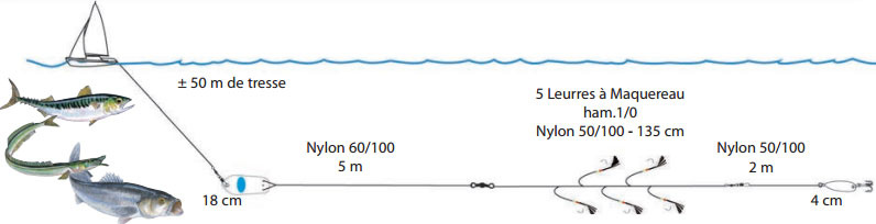 Traîne spéciale voilier | Idéal pour pêche au bar, lieu, orphie et maquereau