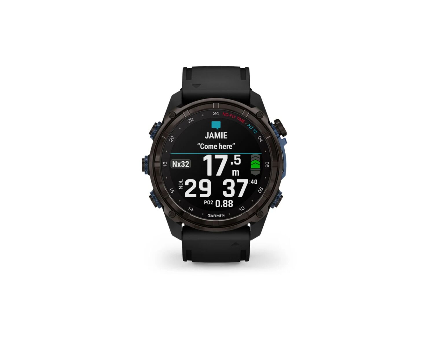 Doté de la technologie de communication sous-marine SubWave™ et d'une fonction de suivi des plongeurs, cet ordinateur de plongée avec gestion de la pression de l'air¹ et montre connectée intègre les toutes dernières innovations Garmin. Ainsi vous pourrez profiter au maximum de votre expérience de plongée.