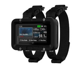 | Alertes et alarmes | Alarmes sonores et vibrantes pour : vitesse de montée, PPO2, système nerveux central/tolérance à l'oxygène, limite de non-décompression, décompression, changement de gaz, pression dans la bouteille, mesure de consommation du gaz Alarmes sonores et/ou vibrantes personnalisables (jusqu'à 40) pour chaque mode de plongée, basées sur la profondeur ou la durée |