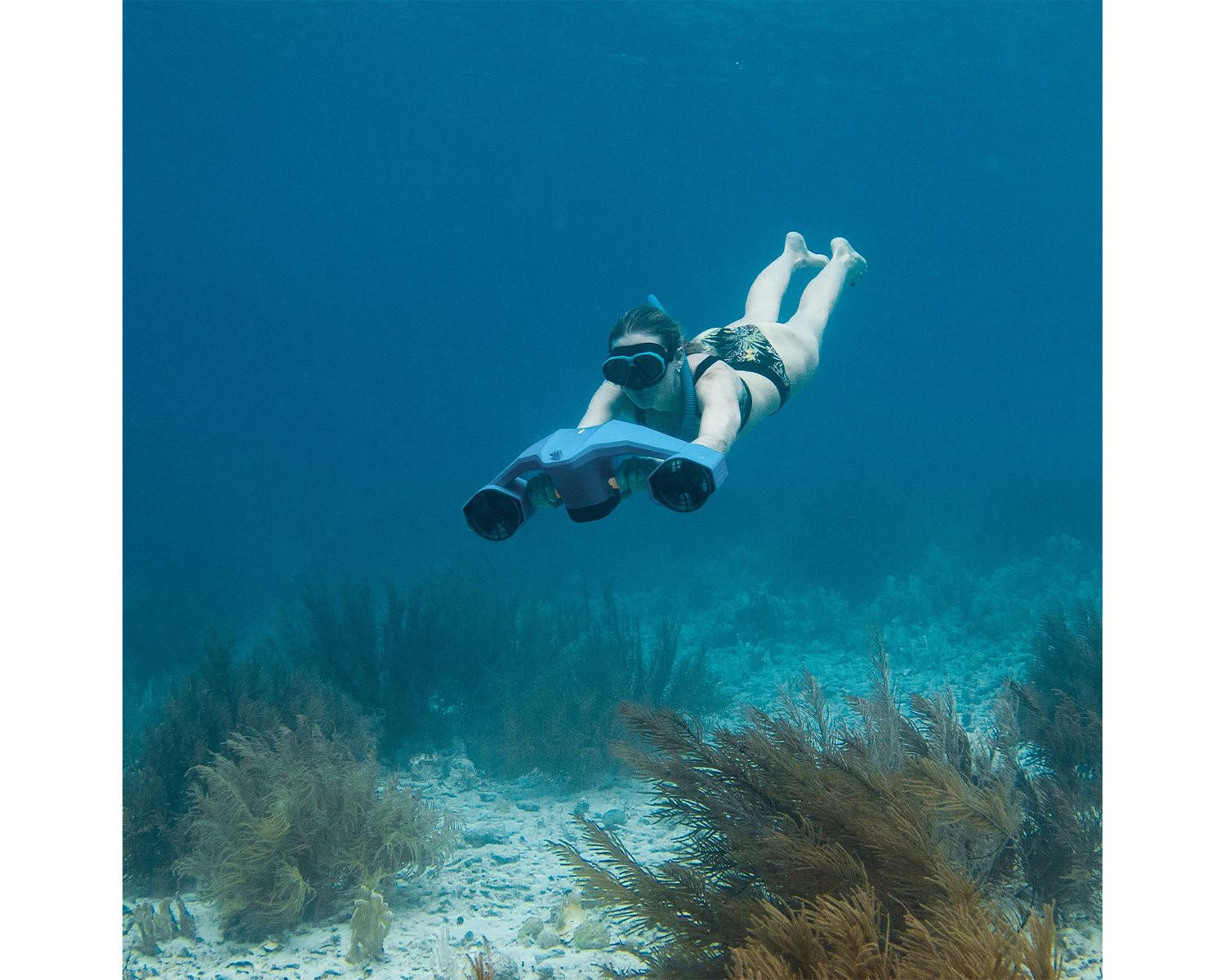 Ce scooter électrique autoflotant vous propulse dans l'eau à une vitesse pouvant atteindre 8,5 km/h, ce qui vous permet de vivre des aventures exaltantes jusqu'à 30 mètres de profondeur.