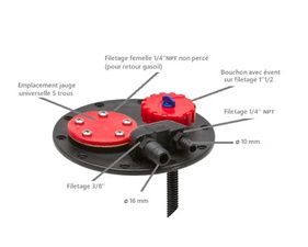 Livré avec une trappe d'inspection avec évent et bouchon de remplissage.