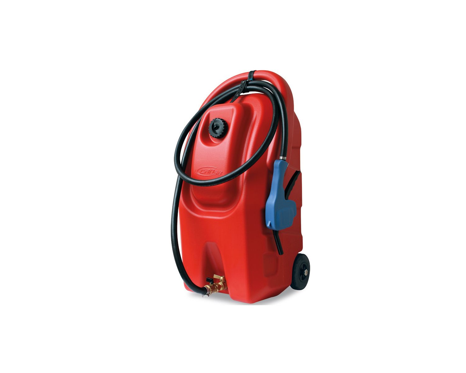 Ce réservoir mobile sur roulettes de 59 L combine deux fonctions, réservoir et distributeur de carburant.