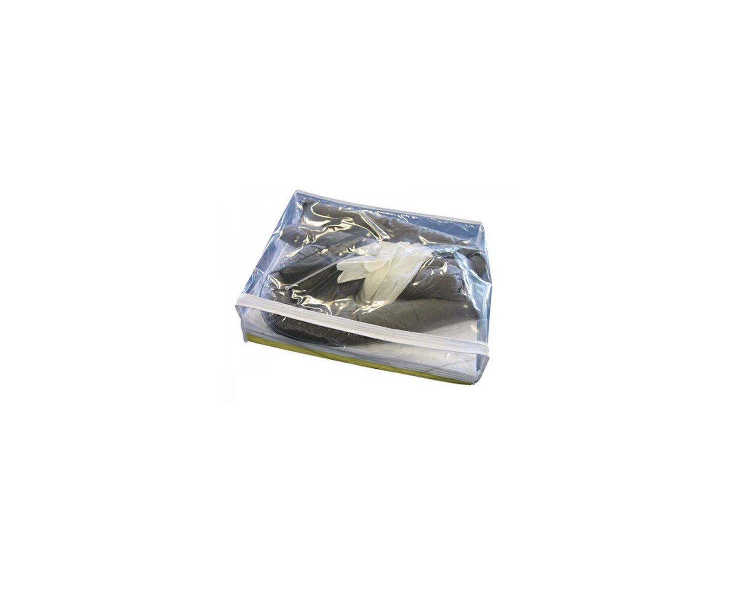 Avec une capacité d’absorption de 25 litres, ce kit contient 10 feuilles pour hydrocarbures, 10 feuilles pour produits chimiques, 2 boudins universels, gants, sacs poubelles.