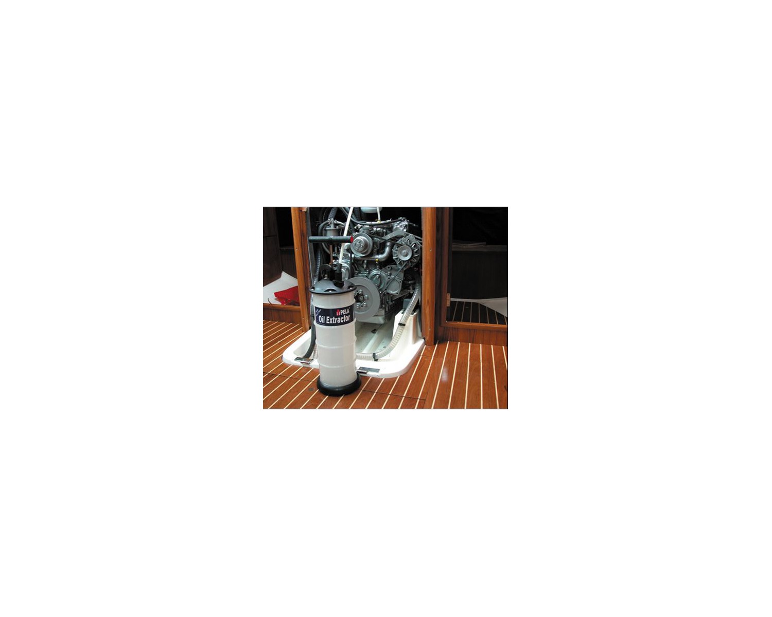 Un cycle de pompage (5 à 10 pompages à la suite) permet d'aspirer 4L de fluide, et assure une vidange propre. Le regard du réservoir permet de voir la quantité d'huile extraite.
