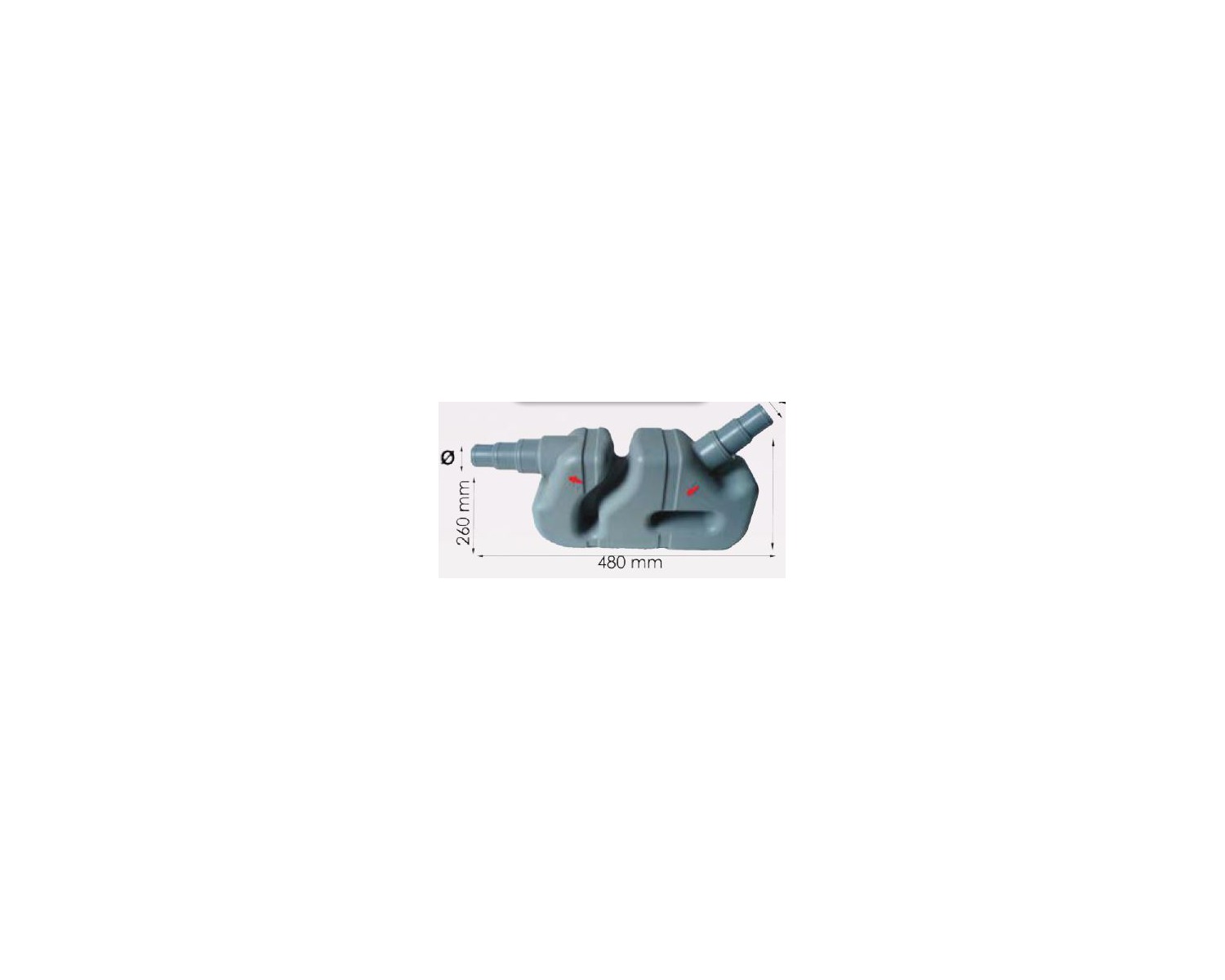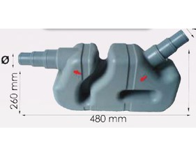 Ce pot, d'une capacité de 9L, est doté d'embouts recoupables selon le diamètre du tuyau. Afin d'améliorer son maintien, ses rainures permettent de le fixer avec des sangles.